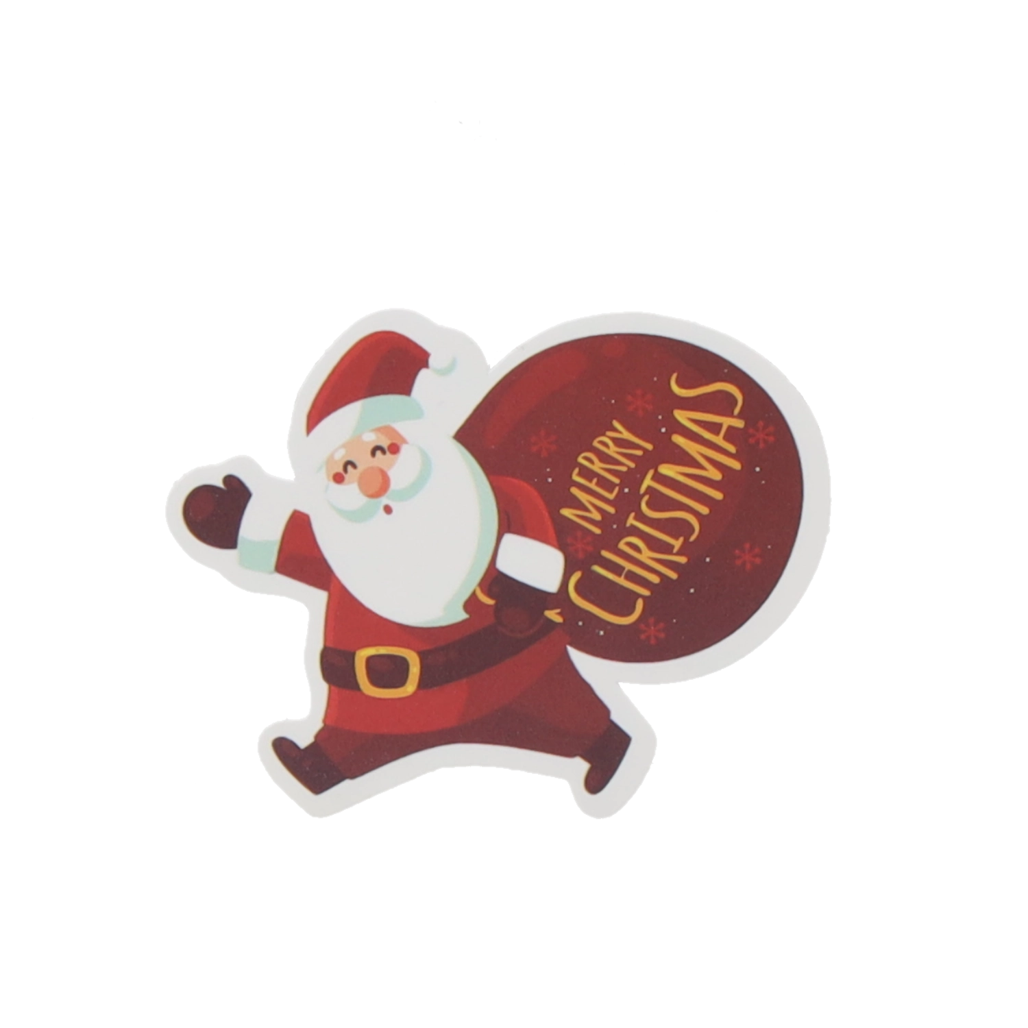De verpakking bevat een mix van stickers met feestelijke motieven: de Kerstman, sneeuwpop, kerstboom en teksten als Merry Christmas voor een opvallend effect.