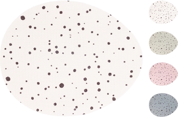 Stijlvolle placemat in de vorm van een ei met afmetingen 31 × 36 cm die je tafel een feestelijke sfeer geeft en deze tegelijk betrouwbaar beschermt tegen krassen en vuil. Dankzij het lichte ontwerp (15 g) is hij gemakkelijk te dragen en op te bergen en is hij verkrijgbaar in vier gedempte kleuren die perfect combineren met diverse tafeldécors.