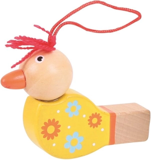 Houten kleurrijke fluitje Vogel in een vrolijk geel ontwerp brengt vreugde en plezier aan elk kind. Blaas en laat de vogel een vrolijk deuntje fluiten.