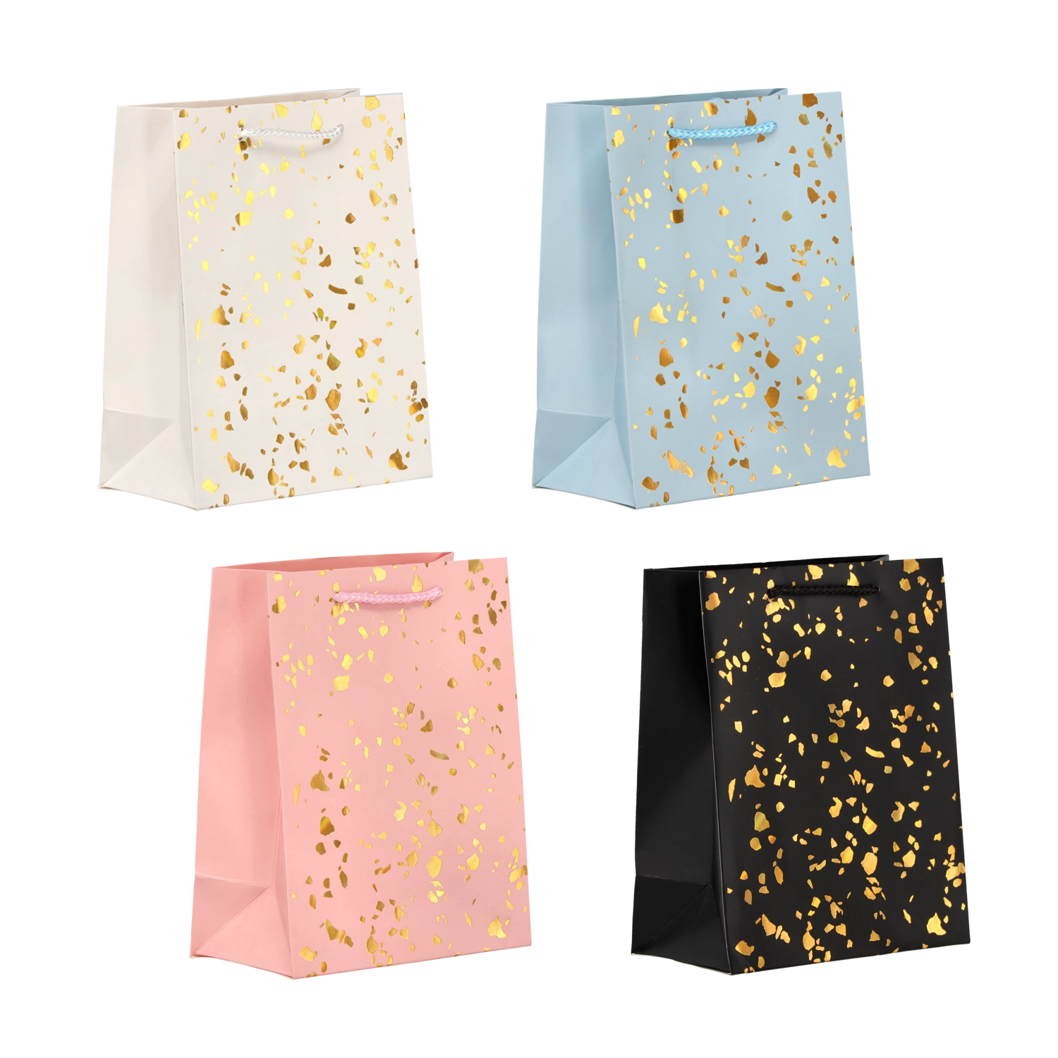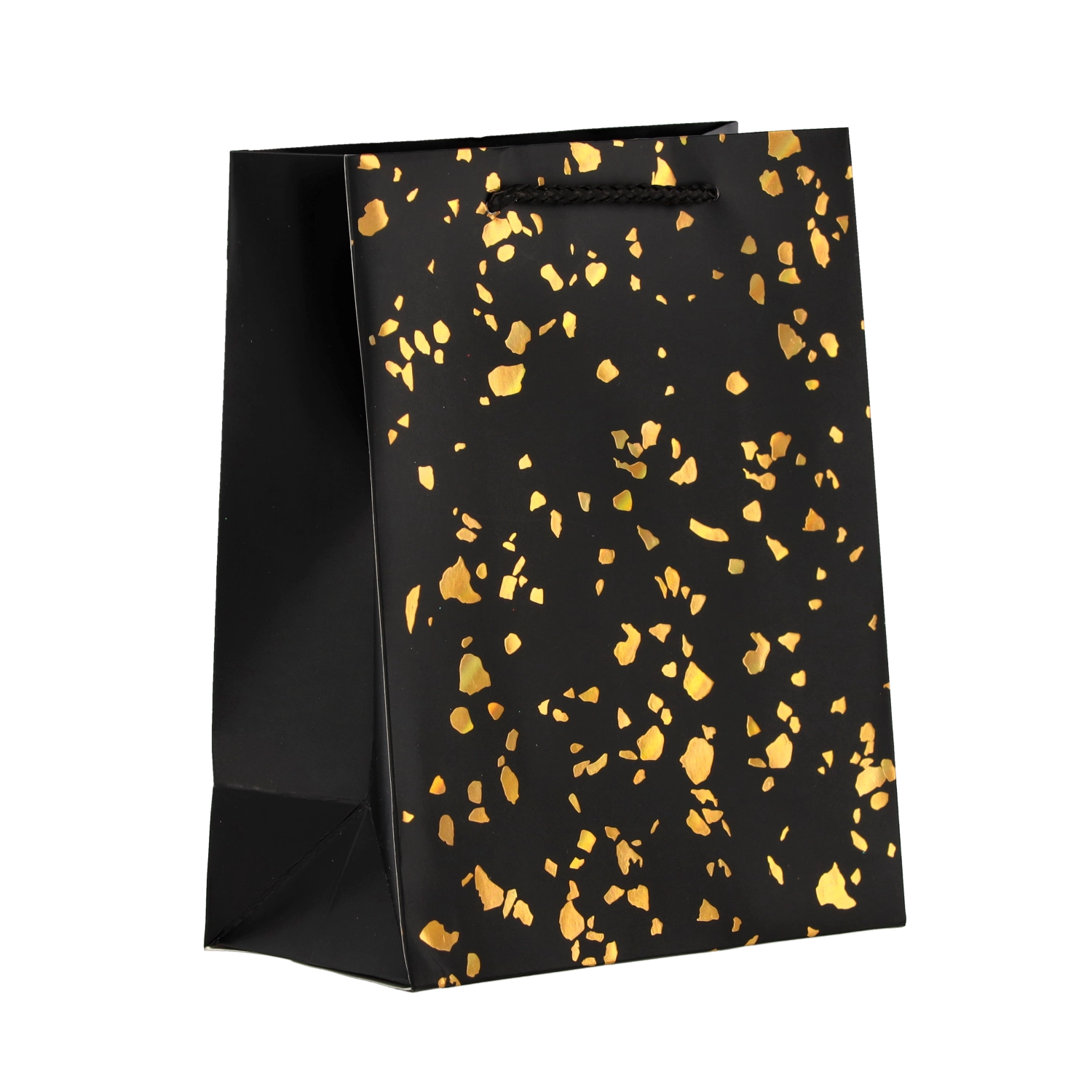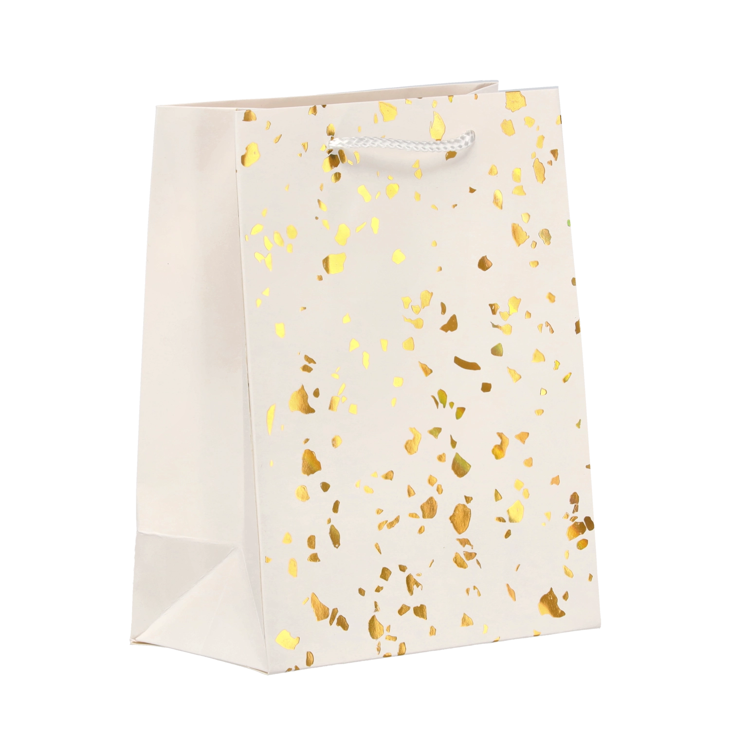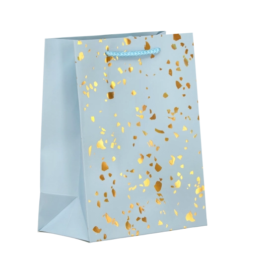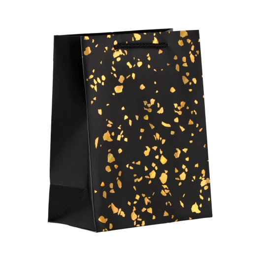 Deze cadeauzak valt op door een tijdloos design met goudkleurige stippen op een effen achtergrond. Gemaakt van stevig decoratief karton dat herhaald gebruik aankan en een representatieve look behoudt. Kleurgecoördineerde koordhandvatten zorgen voor comfortabel en veilig dragen.