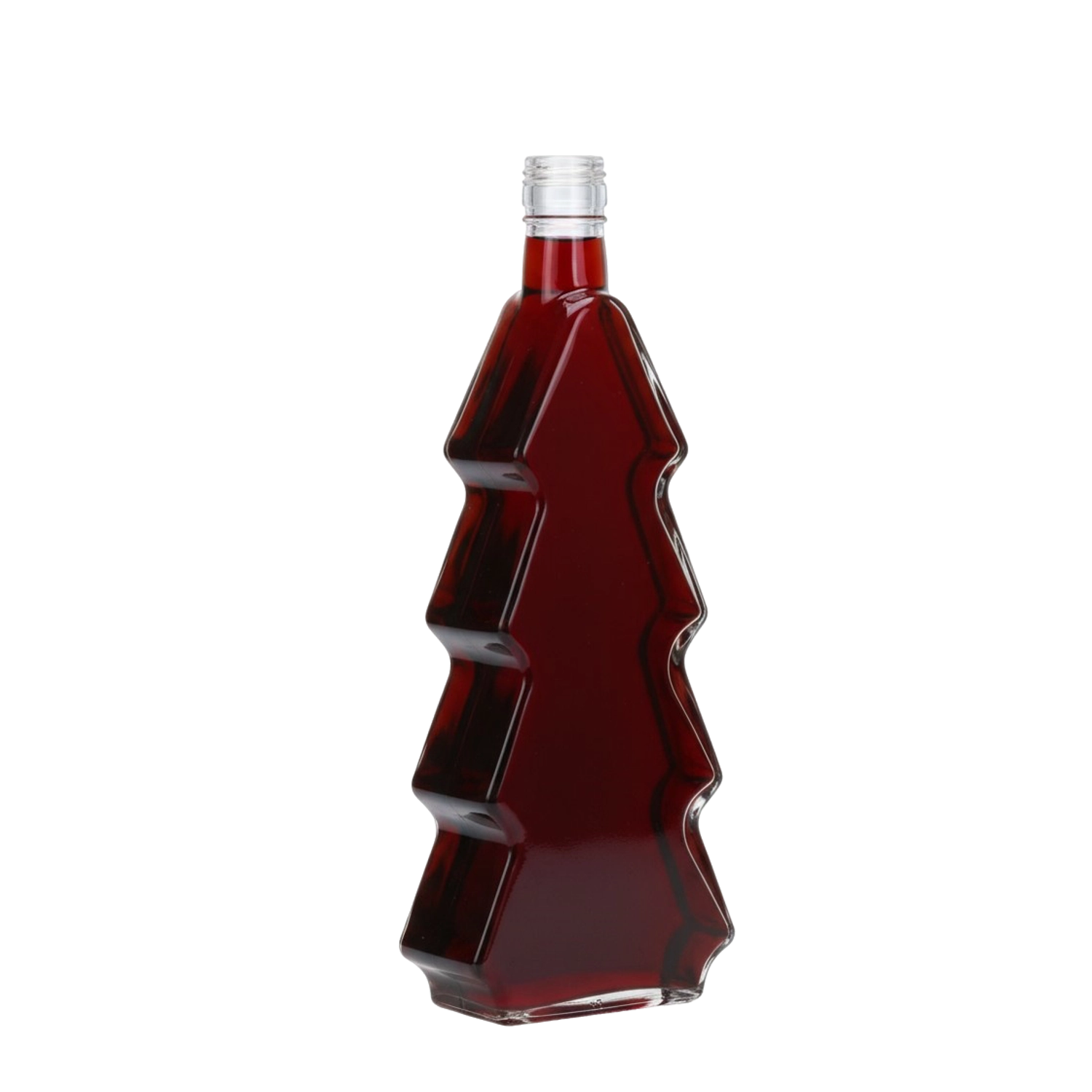 Deze designfles van hoogwaardig, stevig glas combineert functionaliteit en esthetiek. Dankzij de kerstboomvorm versterkt hij de feestelijke sfeer en wordt hij een opvallende verpakking voor je zelfgemaakte lekkernijen – van geurige likeuren en siropen tot sappen en gearomatiseerde oliën. Het transparante glas benadrukt de kleur en structuur van de inhoud, waardoor de fles er zowel op de plank als onder de kerstboom uitstekend uitziet.