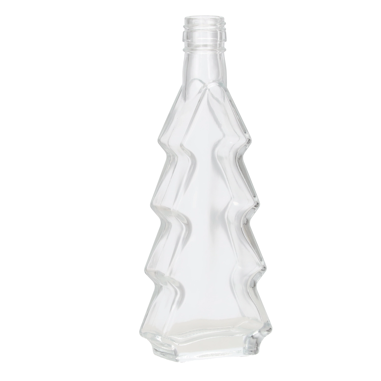 Deze decoratieve fles in de vorm van een kerstboom combineert functionaliteit en een feestelijke sfeer. Het heldere glas maakt een indrukwekkende presentatie mogelijk van kleurrijke likeuren, huisgemaakte siropen of oliesamenstellingen met kruiden. Dankzij de universele schroefdraad en de meegeleverde dop blijft de inhoud veilig en luchtdicht bewaard.