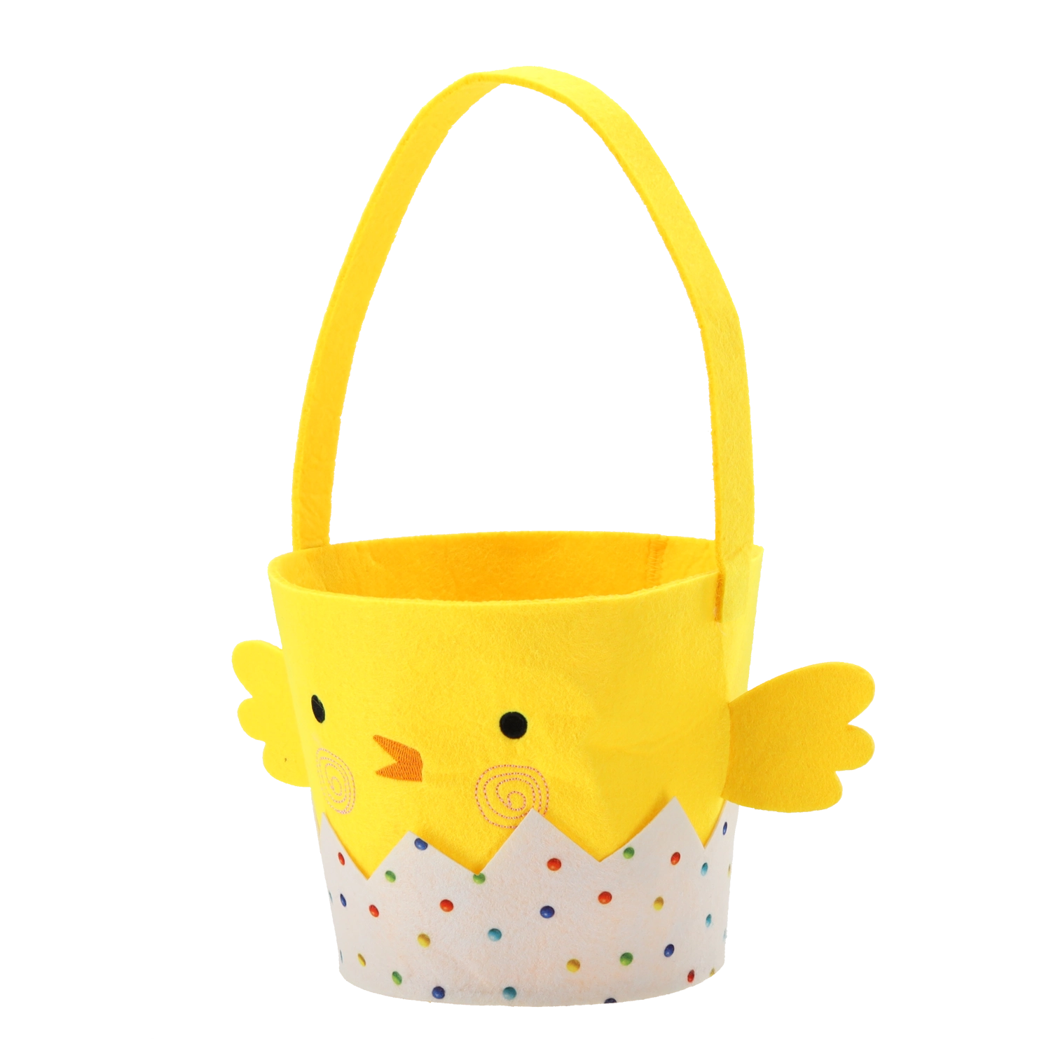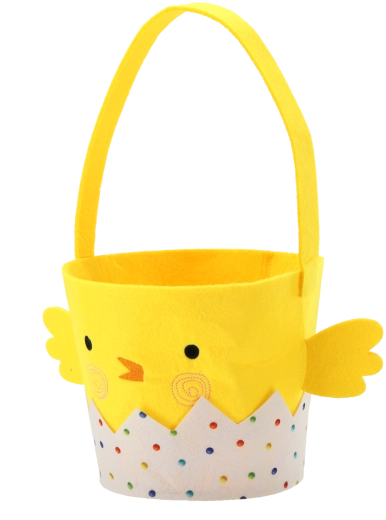 Creëer thuis een vrolijke sfeer met dit decoratieve mandje van zacht vilt. Het gele kuikentje dat uit een groene schaal met de tekst “Easter” tevoorschijn komt en het vilten bloemetje op het hoofd zorgen voor charme en speelsheid in je decor. De krachtige combinatie van geel, groen en oranje trekt de aandacht en past prachtig bij lentetoebehoren.