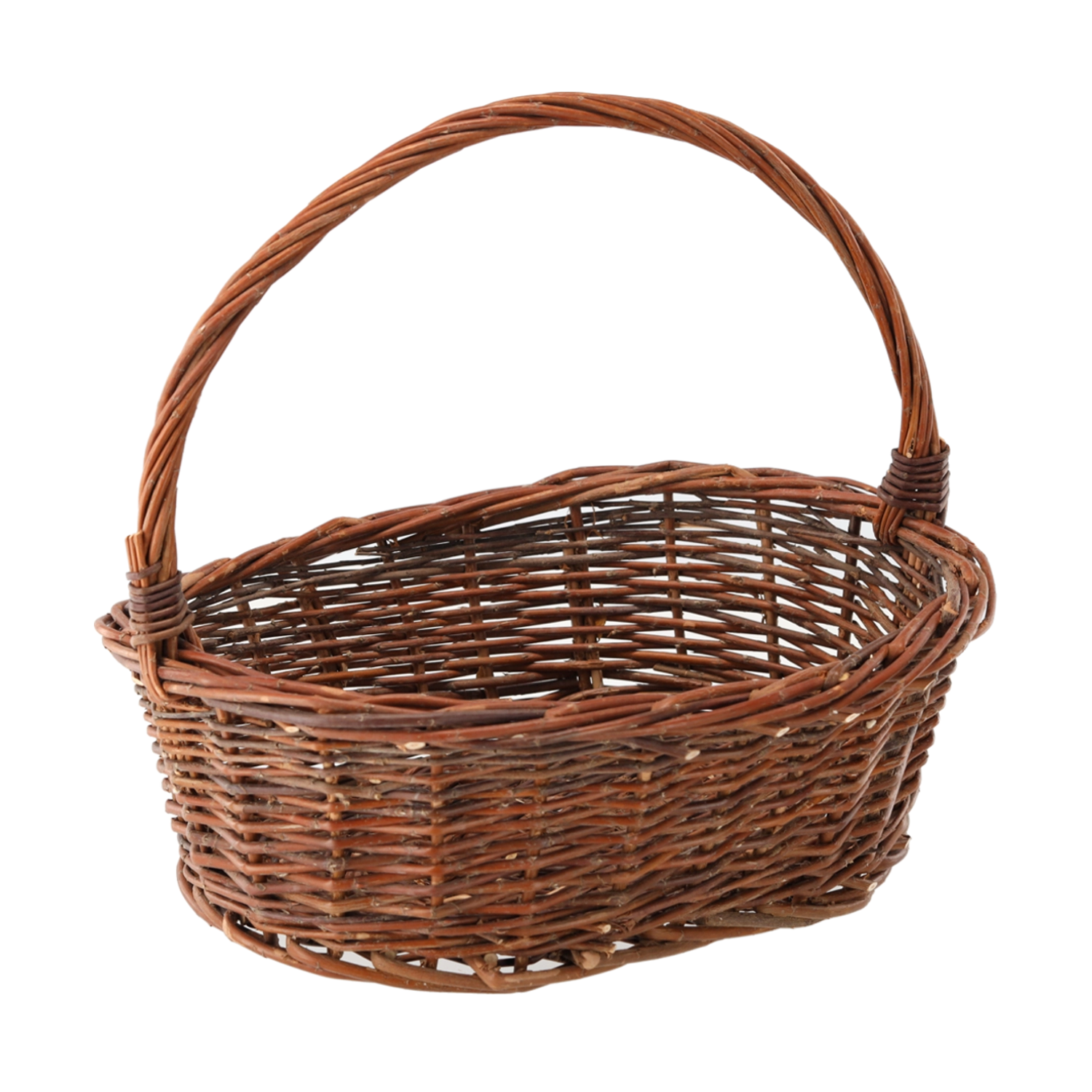 Ontdek een praktische hulp voor elke dag. Deze elegante bruine rieten mand is gemaakt van kwalitatief hoogwaardig natuurlijk riet, dat uitblinkt door zijn lichtheid en weerstand tegen vocht en alledaagse slijtage. Dankzij het zorgvuldige handvlechten heeft de mand een traditionele look en is hij stevig genoeg voor het veilig dragen van boodschappen of picknickuitrusting.