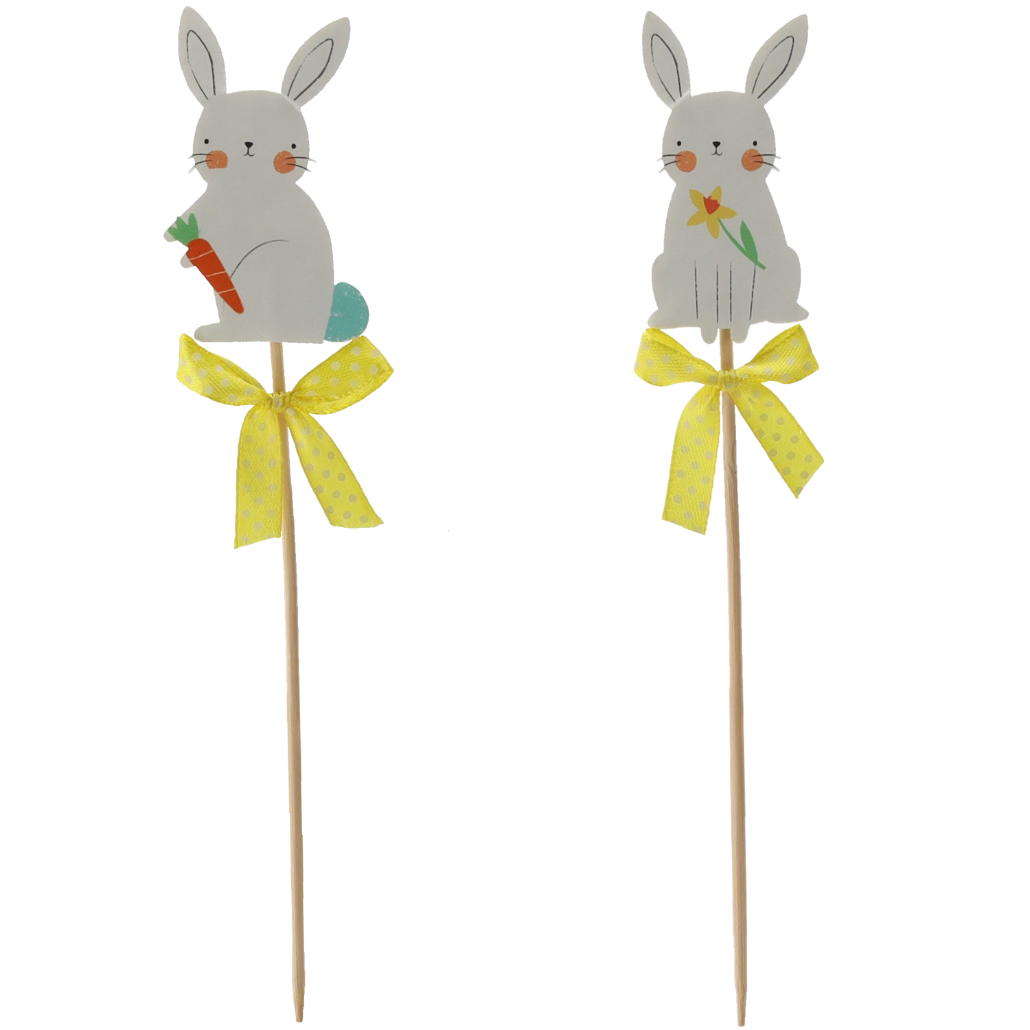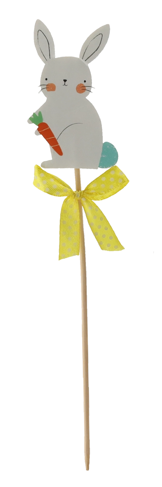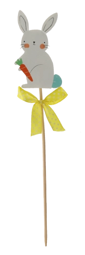 Deze paasdecoratie op prikker is een ideale keuze voor snelle en effectieve decoratie van je huis. De compacte afmetingen van 4 × 7,5 cm maken het eenvoudig om ze in bloempotten, kransen, lentearrangementen en tafeldecoraties te steken. De mix van twee charmante konijntjesdesigns geeft je decoratie speelsheid en frisheid.