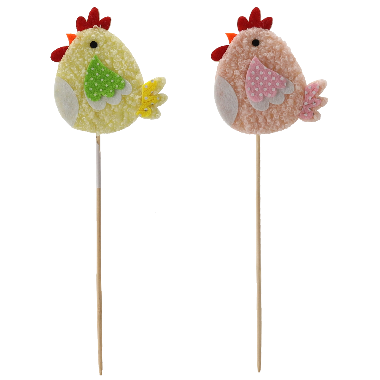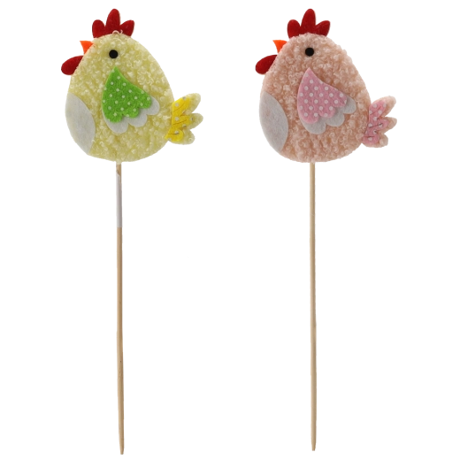 Creëer in een handomdraai een speelse lente- en paassfeer. Het decoratieve kipje op een prikker past perfect in bloemarrangementen, paasmandjes en als accent op de feesttafel. Dankzij de twee kleurvarianten stem je de decoratie eenvoudig op één stijl af.