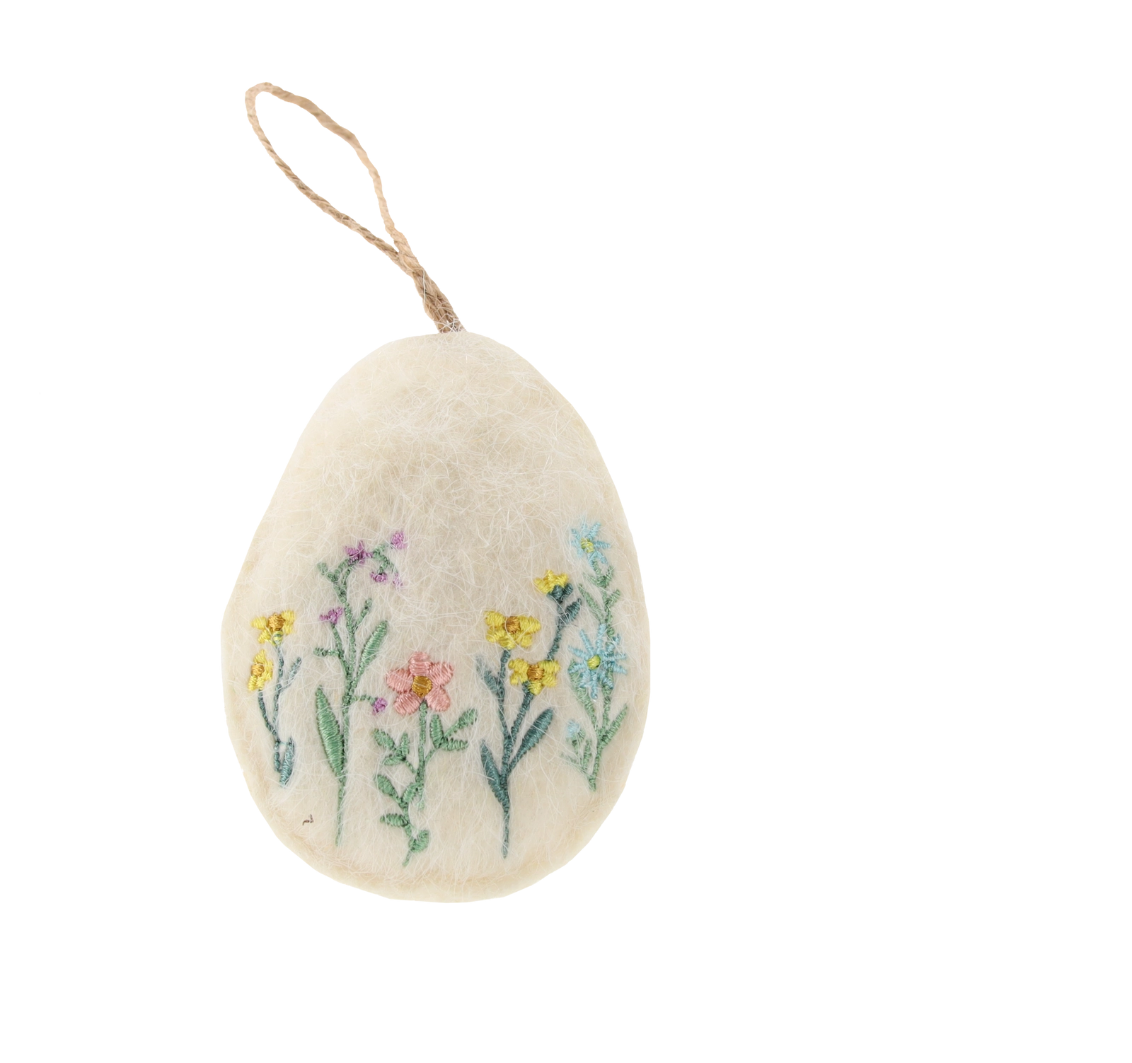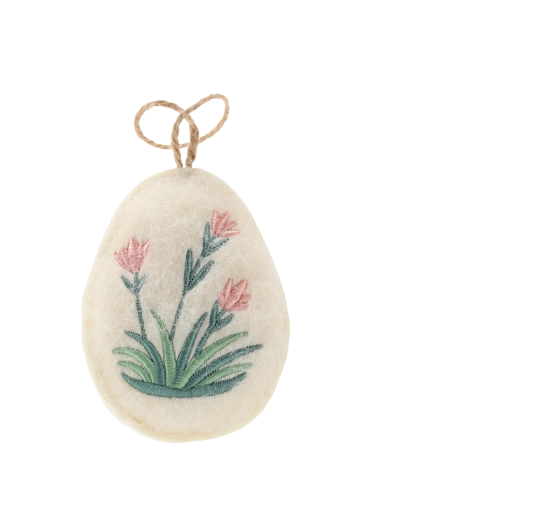 Deze elegante paasdecoratie in de vorm van een ei valt op door de fijne geborduurde bloemen en de zorgvuldige afwerking. Dankzij het praktische lusje hang je ze gemakkelijk aan takken, rieten kransen of in het raam. De set van 12 stuks in twee patronen laat je de decoratie in één stijl afstemmen of speels variëren.
