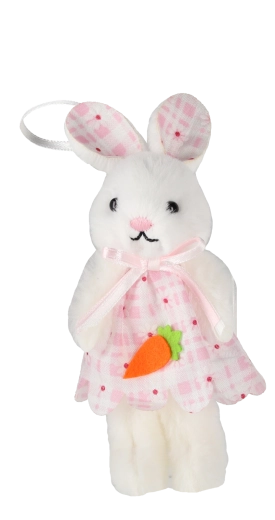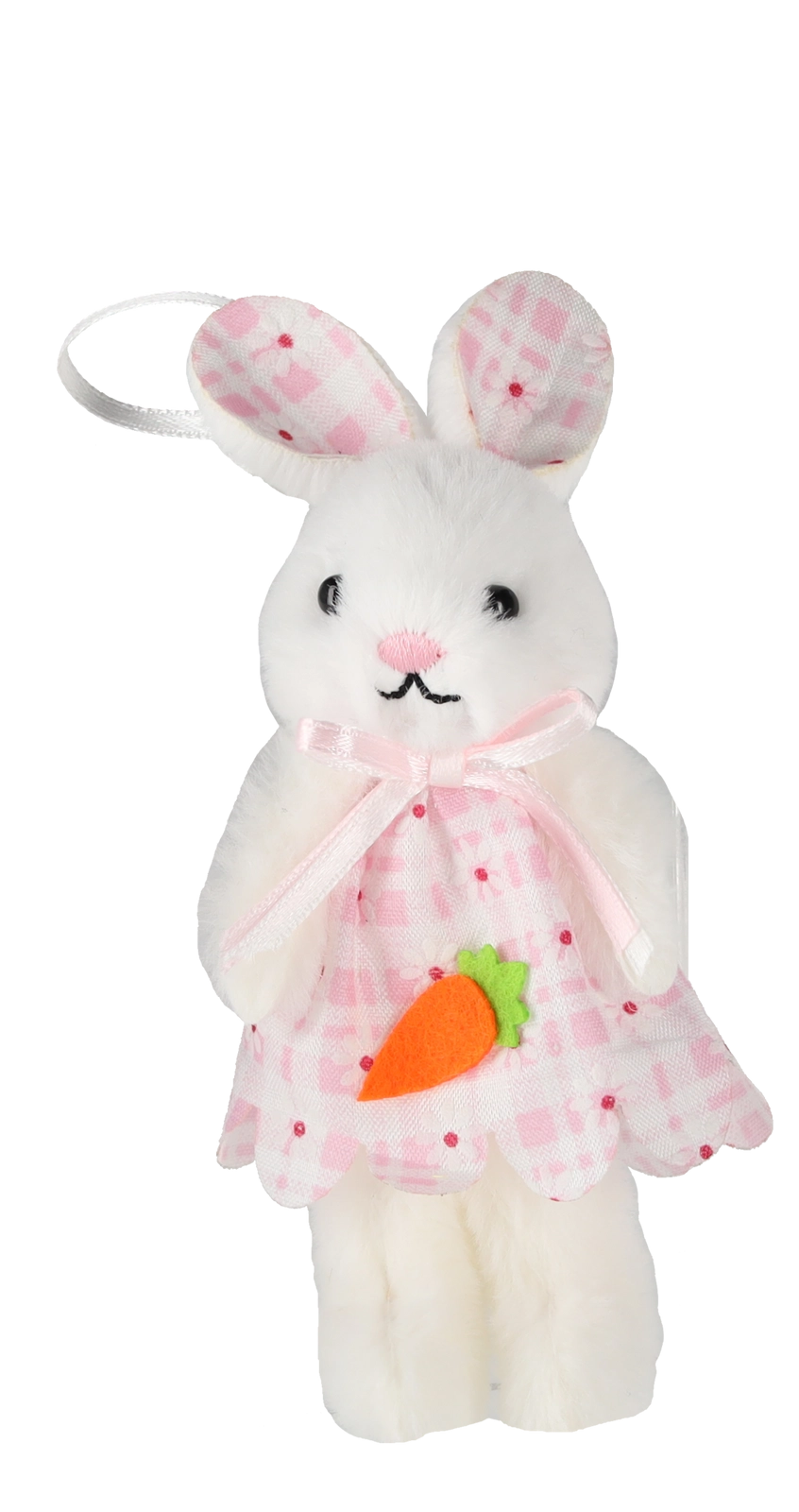 Elk konijntje heeft een praktisch lusje voor snelle plaatsing aan takjes, raamgrepen, rotankransen of cadeauverpakkingen.