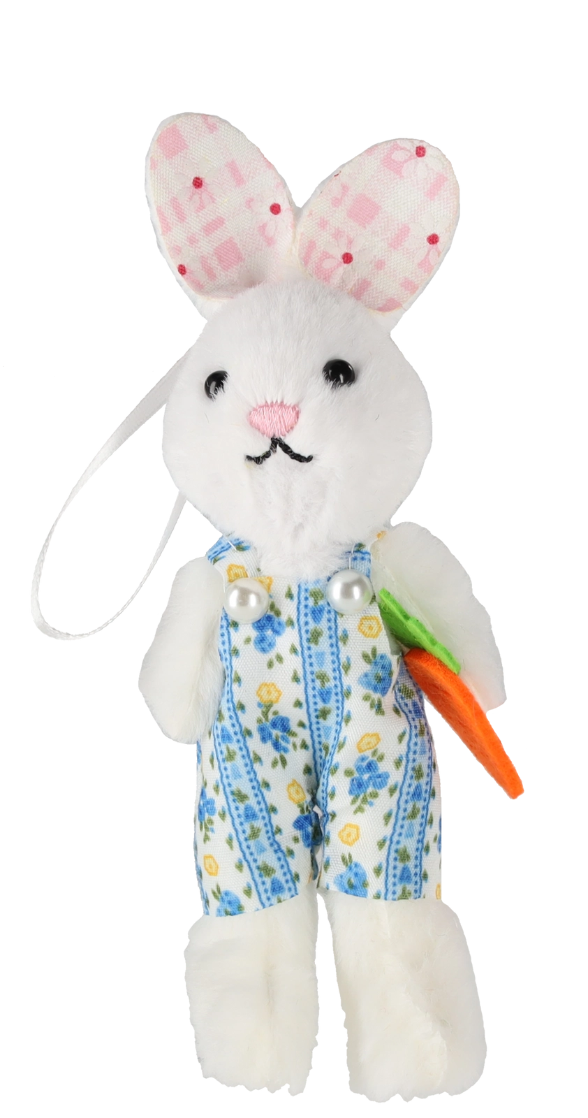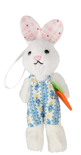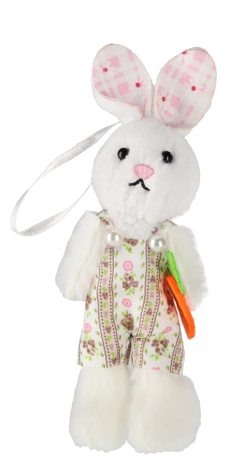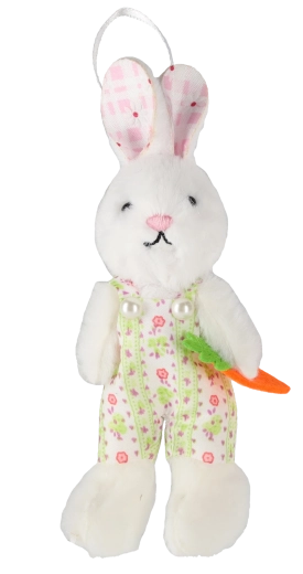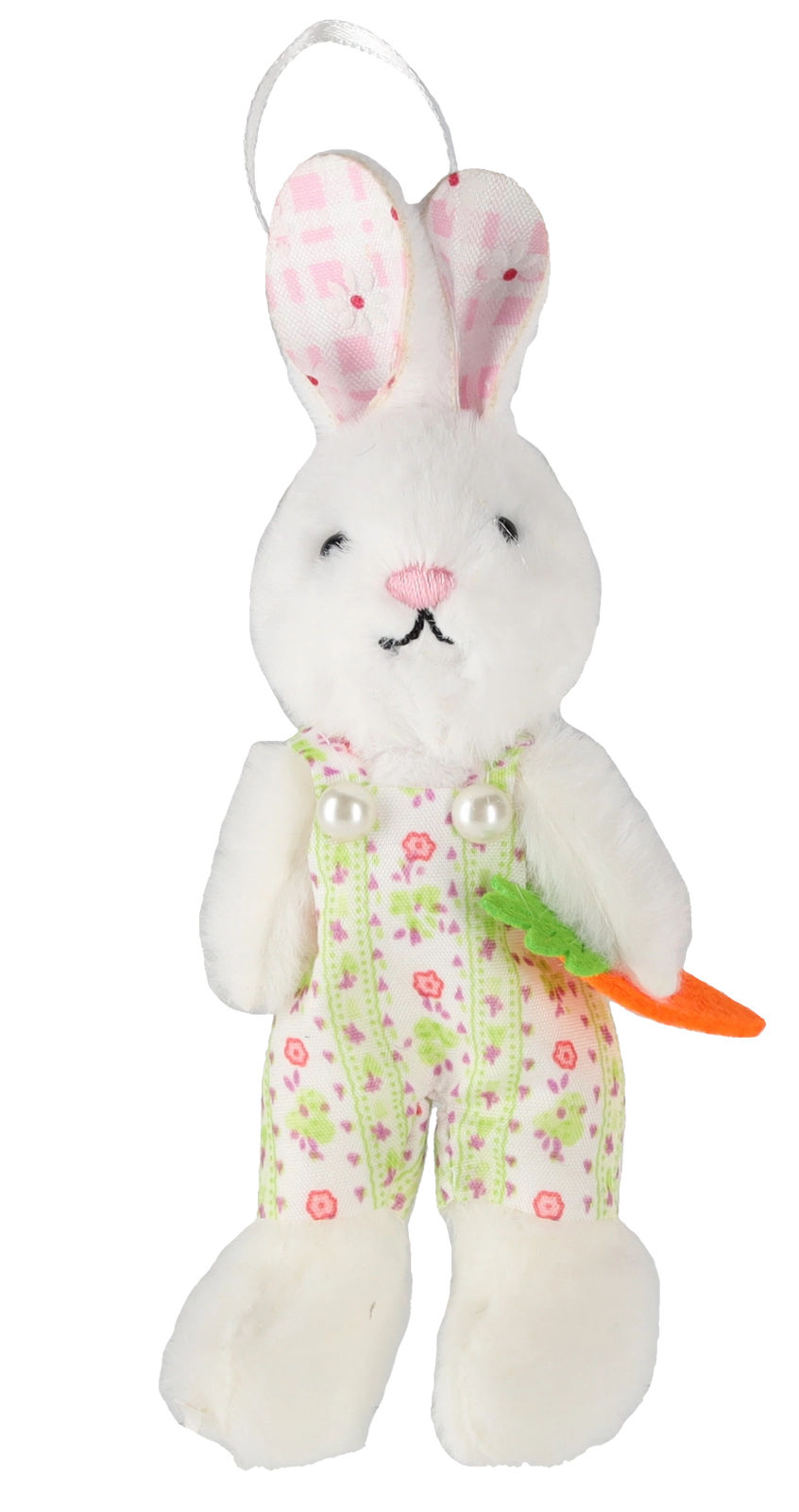 Creëer een vrolijke lentedecoratie thuis met de hangende konijntjes met wortel. Elk stuk is zorgvuldig afgewerkt, met subtiele details en kleurrijke kleertjes die takjes, ramen en paaskransen opfleuren. Dankzij de compacte afmetingen van 6 × 11 cm passen ze in ieder interieur.