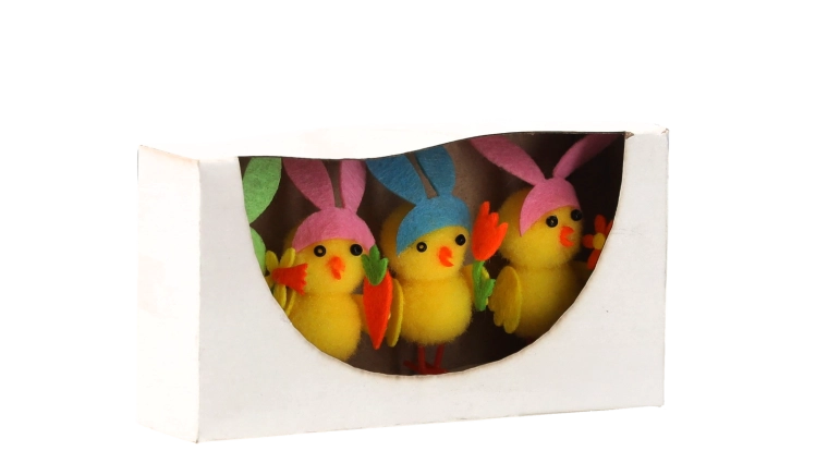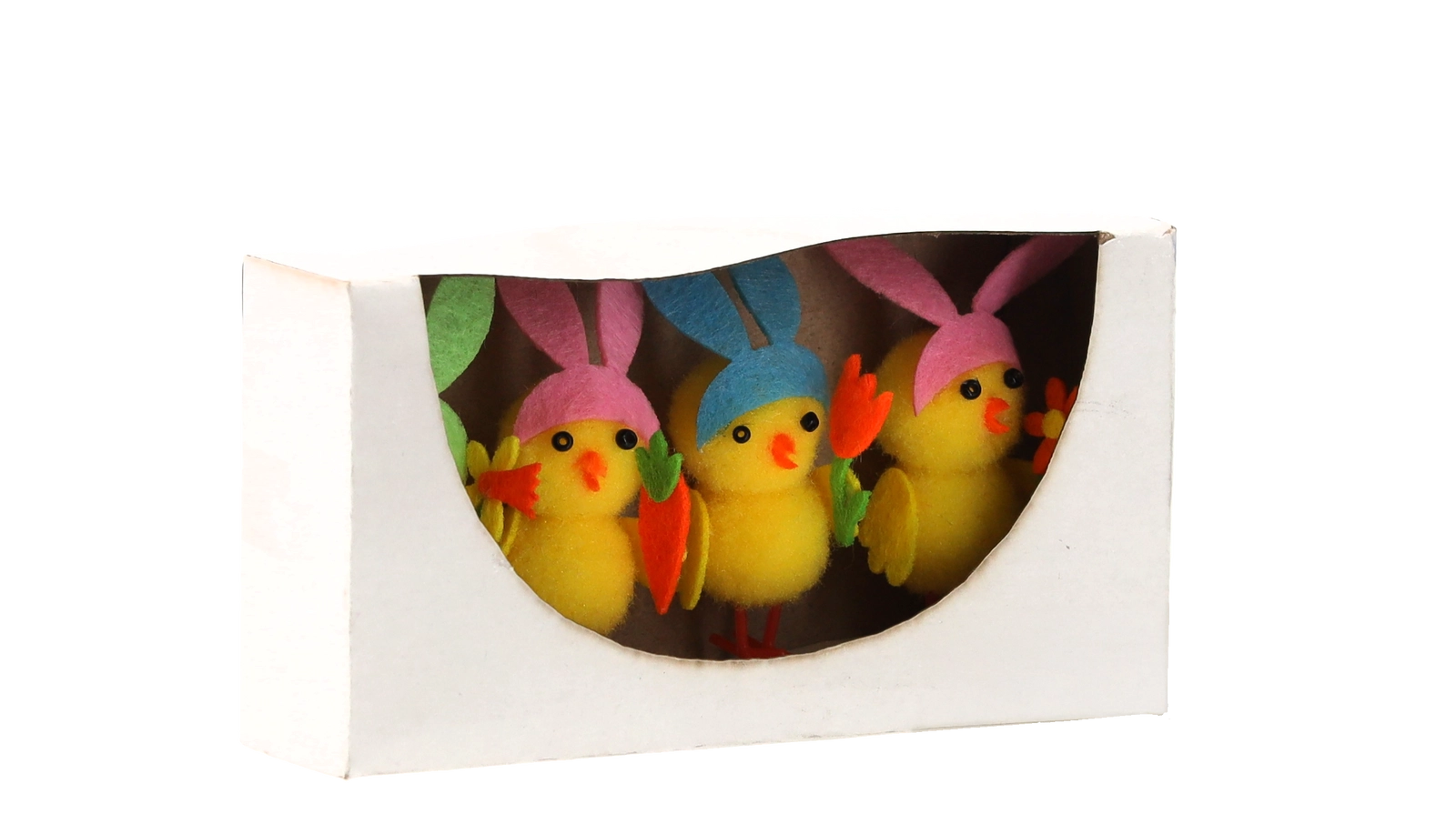 Creëer thuis een betoverende lentesfeer met een set van vier gele kuikentjes met konijnenoren. Deze decoraties symboliseren de komst van de lente, vreugde en vernieuwing en zijn gemakkelijk te combineren met andere paasaccessoires. Dankzij de stevige kunststof uitvoering zijn ze licht, veilig en geschikt voor herhaald gebruik.