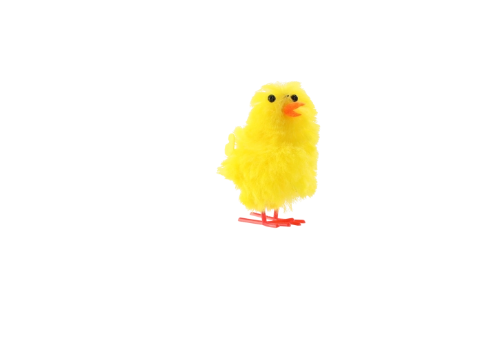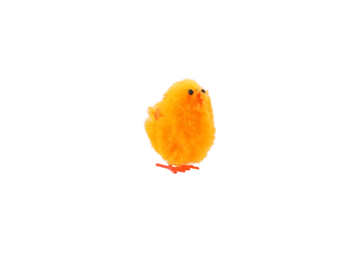 Elk kuikentje heeft een aangenaam zachte structuur en staat op oranje pootjes, waardoor het goed vorm en positie behoudt op een vlakke ondergrond.