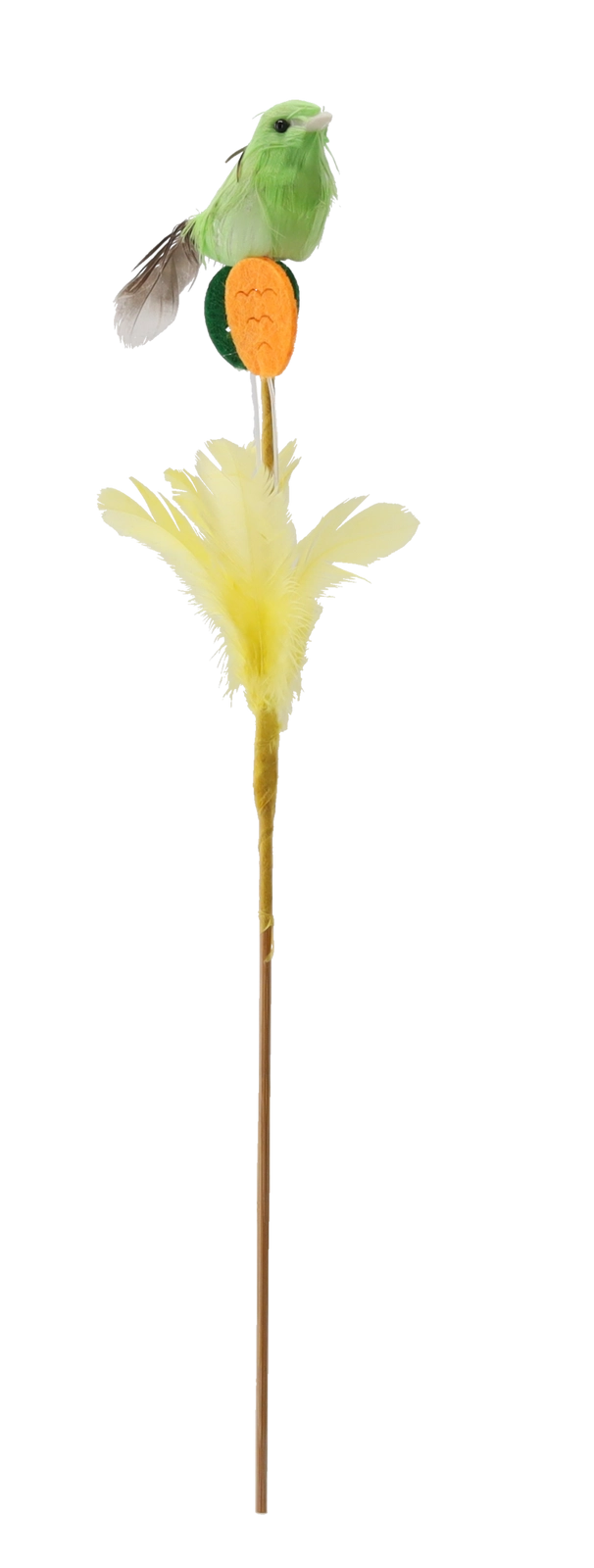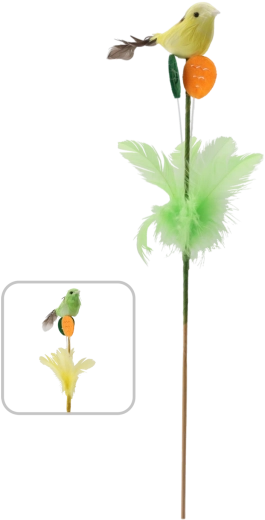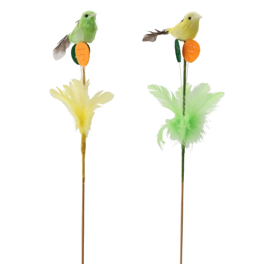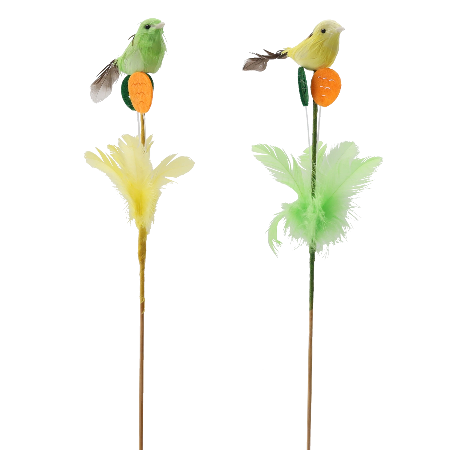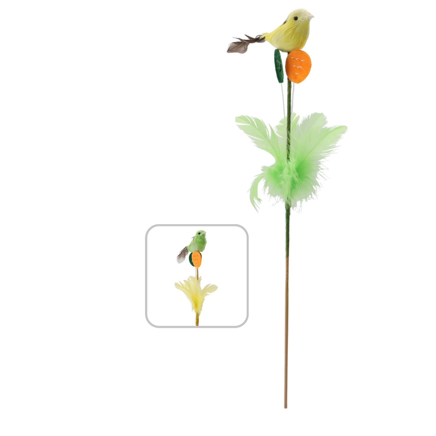 Elegante paasdecoratie op een prikker in de vorm van een vogeltje met veertjes, lengte 30 cm, geeft je interieur een frisse lentetoets. Dankzij de fijne veertjes en de realistische afwerking oogt hij natuurlijk en komt hij mooi tot zijn recht in bloemstukken, paaskransen en ook als losse decoratie. Verkrijgbaar in twee kleurvarianten, verpakt per 12 stuks – ideaal voor grotere projecten of om te delen met dierbaren.