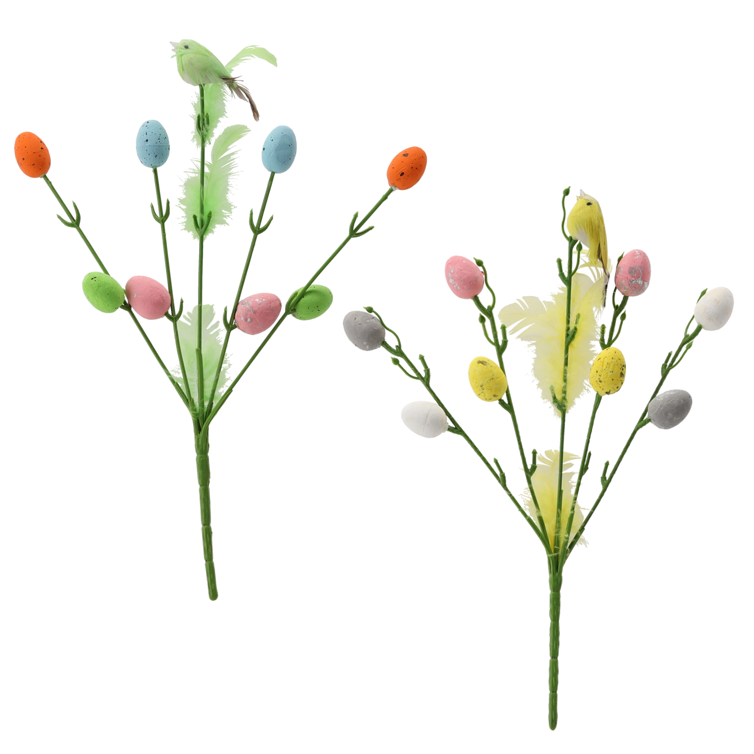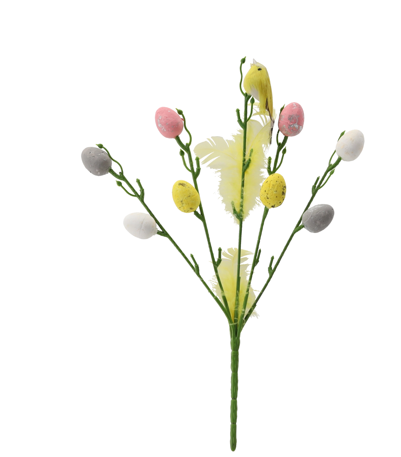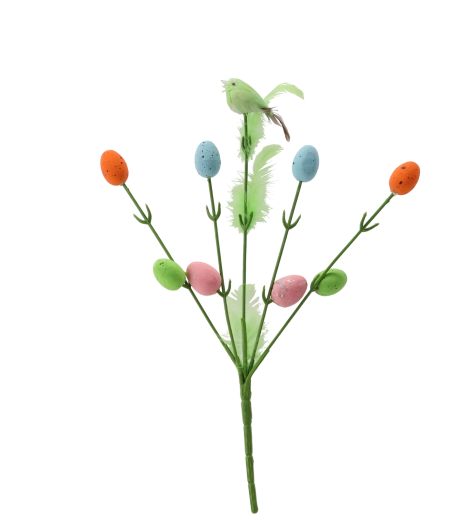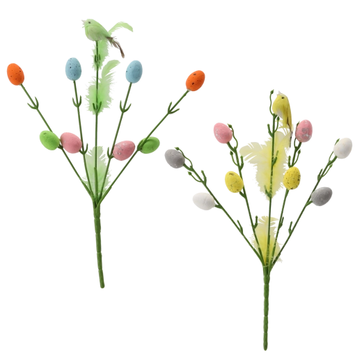 Het takje is licht, onderhoudsvrij en dankzij de stevige prikker plaats je het eenvoudig in arrangementen. De pasteltinten zorgen voor frisheid en benadrukken de feestelijke paassfeer.