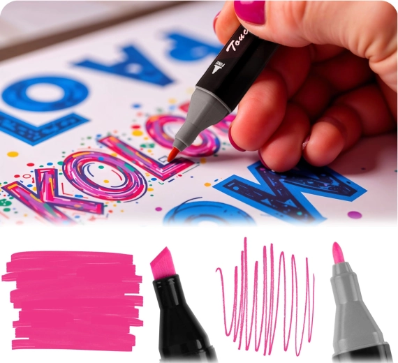 Ergonomisch gevormde markers zijn opgeborgen in een stevige etui met rits en schouderriem, die de kleuren beschermt en ordelijk geordend houdt. Dankzij gekleurde, genummerde doppen vind je snel en eenvoudig de gewenste toon. De set is perfect voor illustratoren, studenten, hobbyisten en voor creatieve momenten met het gezin.