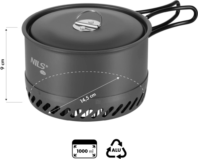 Kook water en eenvoudige maaltijden snel en efficiënt. De pan van geanodiseerd aluminium warmt snel op, is licht en tegelijk bestendig tegen beschadiging. De geïntegreerde warmtewisselaar op de bodem vergroot het contactoppervlak met de vlam, verbetert de egale warmteverdeling en helpt brandstof te besparen.