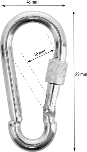 Dankzij de afmetingen 8,9 × 4,3 cm en een doorlaat van 10 mm is hij ideaal voor veelzijdig gebruik – van het ophangen van uitrusting, bevestigen van koorden en kettingen tot het organiseren van gereedschap. De slijtvaste afwerking beschermt tegen corrosie en slijtage.