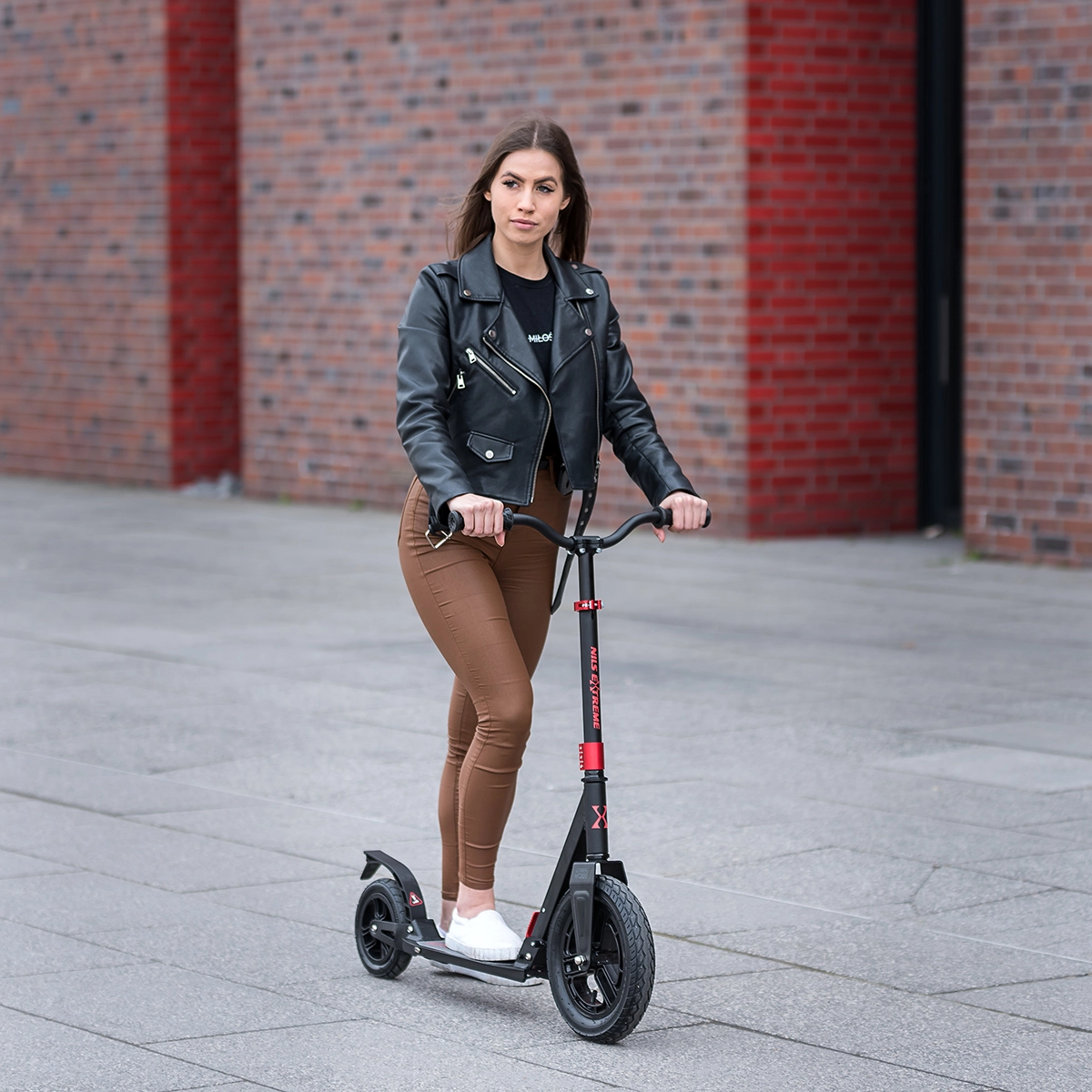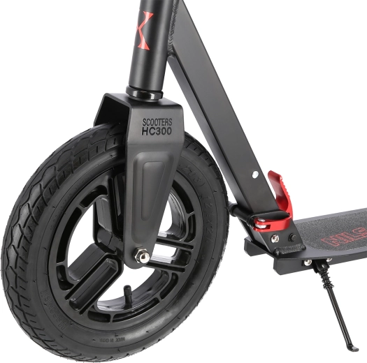 De NILS Extreme HC300 is een doordachte stadsstep voor volwassenen die moeiteloos over kasseien, stoepranden en scheuren in asfalt rijdt. Het grote pneumatische voorwiel van 300 mm en het achterwiel van 200 mm in combinatie met vering absorberen oneffenheden en zorgen voor stabiliteit, ook op langere ritten. Het vouwmechanisme maakt het mogelijk het stuur snel in te klappen en de step eenvoudig mee te nemen in het OV of op te bergen in de kofferbak.