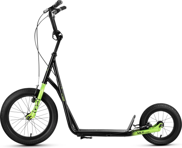 Zoek je een betrouwbaar vervoermiddel voor dagelijkse verplaatsingen en recreatieve ritjes? Deze NILS Extreme step combineert het comfort van luchtbanden met een stevige en lichte constructie. Het voorwiel van 16" en achterwiel van 12" absorberen oneffenheden uitstekend en geven vertrouwen op trottoir, kasseien en verharde paden.