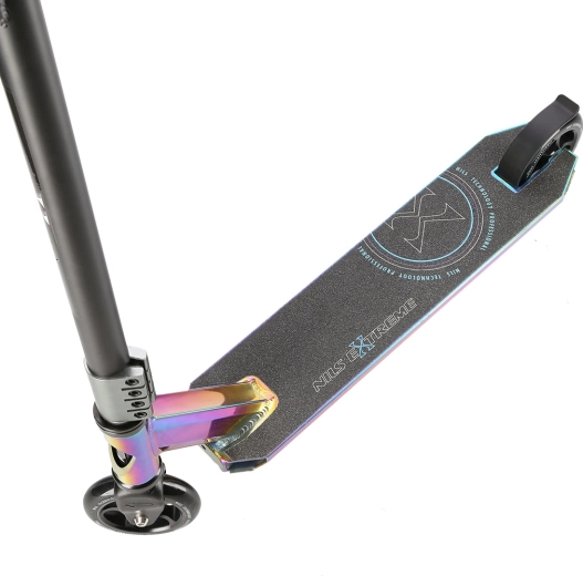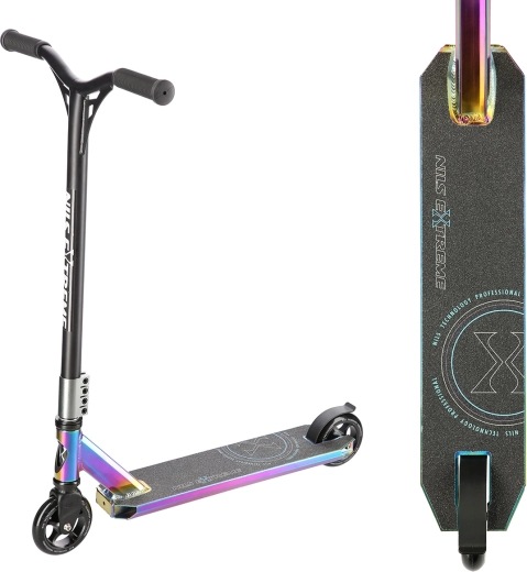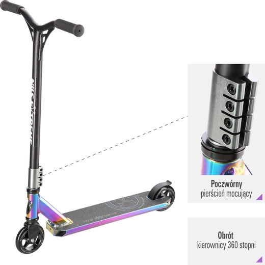 De NILS Extreme HS109 neon is de ideale keuze voor rijders die hun tricks naar een hoger niveau willen tillen. Dankzij de stevige stalen voorvork, de klem met 4 bouten en het robuuste deck met twee dwarsliggers en drie kamers garandeert hij hoge stabiliteit, zelfs bij veeleisendere sprongen. Rubberen handvatten dempen trillingen effectief en verhogen het rijcomfort.
