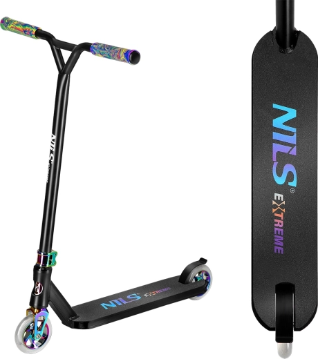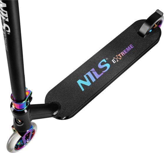 De freestyle step NILS Extreme HS024 Pro is ontworpen voor kinderen, tieners en volwassenen die een betrouwbare en robuuste step willen voor het skatepark, de U-ramp en het stadsasfalt. De stevige constructie zonder vouwmechanisme en zonder verstelbare stuurhoogte maximaliseert de duurzaamheid bij landingen en veeleisende tricks.