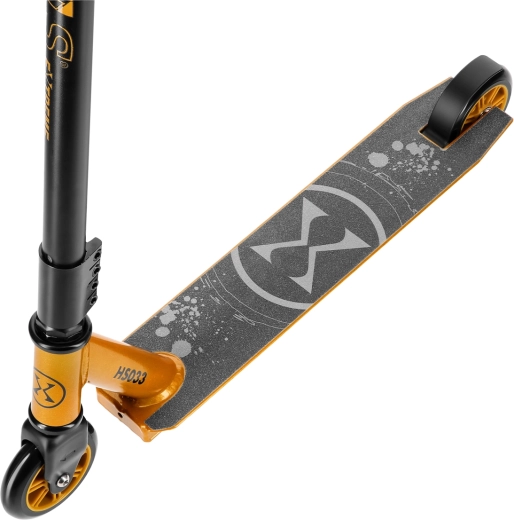 Zoek je een betrouwbare step voor tricks, het skatepark en glad asfalt? De freestyle step NILS Extreme in zwart‑gouden uitvoering combineert een stevige constructie met een laag gewicht van 2,8 kg. Het aluminium enkelkamerdeck en het stalen T‑stuur met viervoudige klem doorstaan ook veeleisend gebruik, terwijl rubberen grips een zekere greep garanderen.
