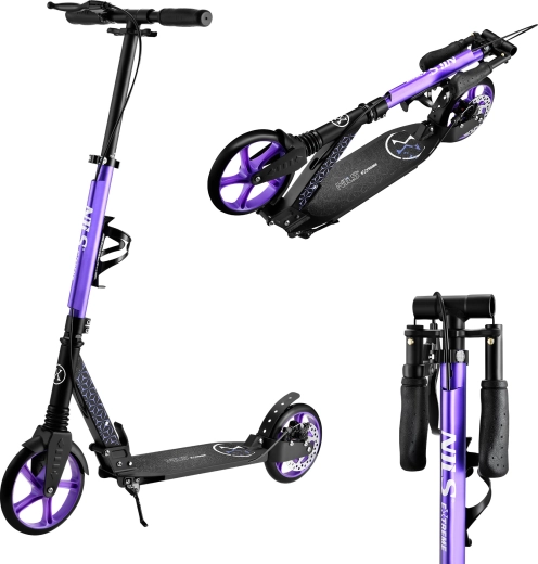 Geniet van een vloeiende en comfortabele rit door de stad met de NILS Extreme HM124T step. Het lichte aluminium frame (slechts 5,6 kg) en de grote polyurethaan wielen van 200 mm met ABEC 7-lagers zorgen voor stabiliteit, lage trillingen en efficiënte afrol op asfalt en verstevigde trottoirs. Ergonomische TPR-handgrepen zorgen voor een zekere grip.