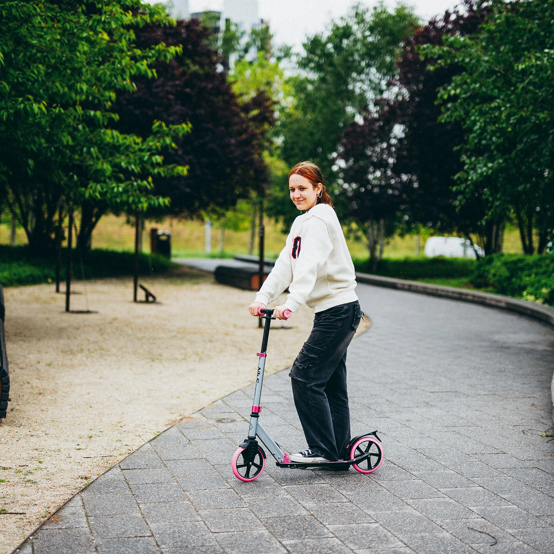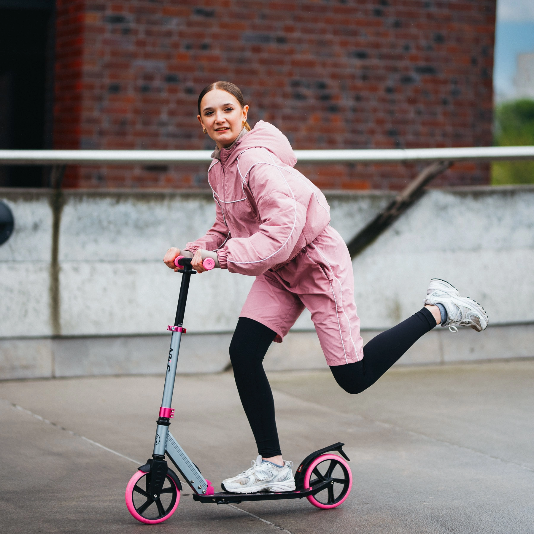 Grote PU-wielen van 200 mm in combinatie met ABEC 7-lagers bieden een soepele en stille rit op asfalt en verharde trottoirs. Ergonomische TPR-grips, een verstelbare stuurhoogte (79–93 cm) en een laag dek verbeteren stabiliteit en comfort, terwijl de achterste voetrem voor betrouwbaar stoppen zorgt.