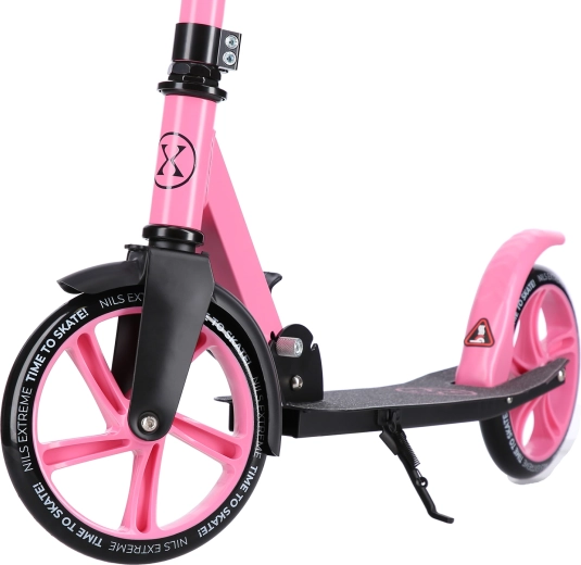 Zoek je een betrouwbare en comfortabele step voor in de stad? De NILS EXTREME HM2009 in het roze combineert een licht staal-aluminium frame met een vouwmechanisme, zodat je hem gemakkelijk meeneemt in het OV of in de kofferbak van de auto. Dankzij het verstelbare stuur en de rubberen handgrepen genieten zowel kleinere rijders als volwassenen van een fijne rit.