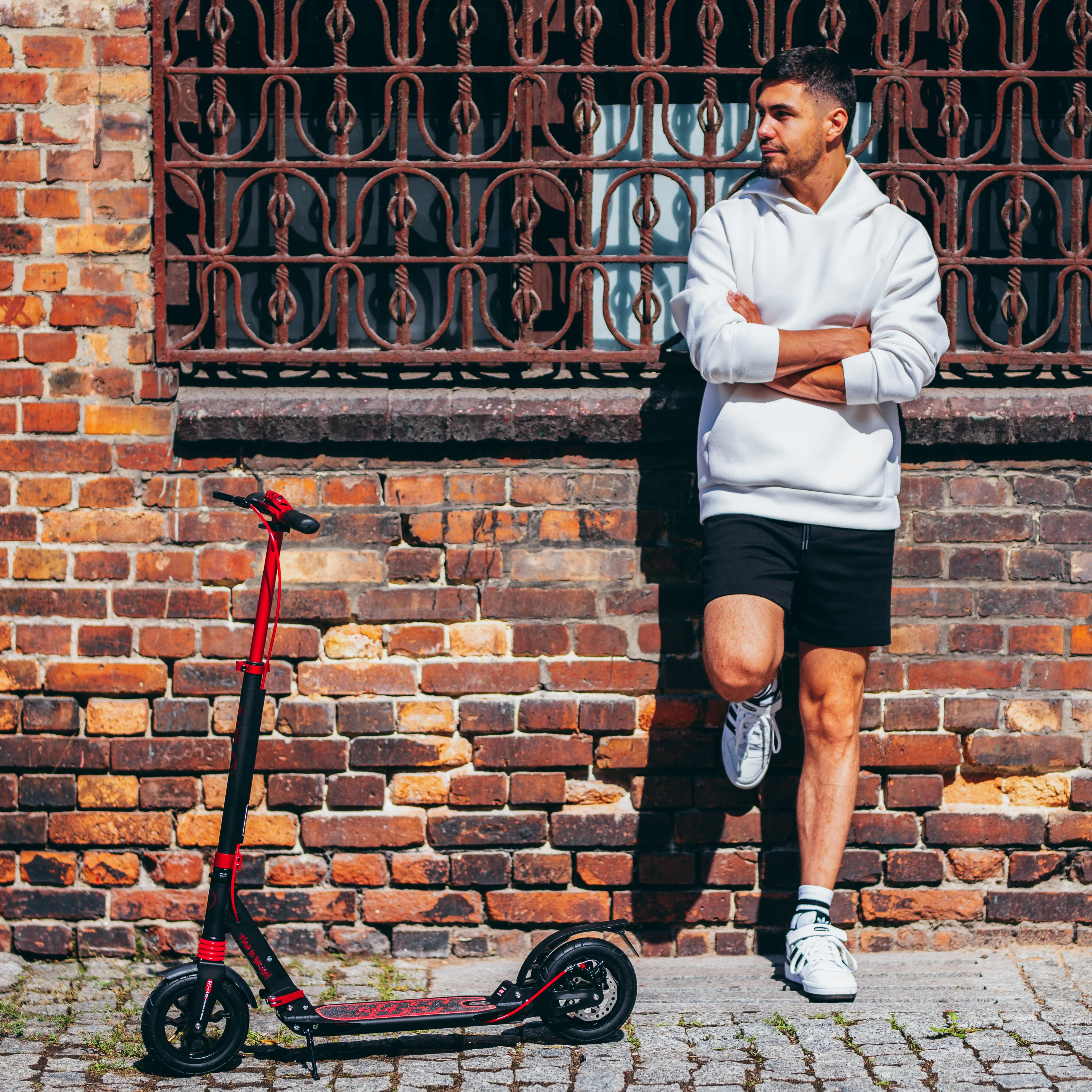 Voor maximale veiligheid is het achterwiel uitgerust met een schijfrem en ook een voetrem met geïntegreerde reflector voor betere zichtbaarheid in schemerlicht. Verstelbare stuurhoogte en ergonomische rubberen grepen zorgen voor comfortabel vasthouden, ook bij langere ritten. Je vouwt de step eenvoudig tot compacte afmetingen en dankzij de afneembare schouderriem neem je hem makkelijk mee in het ov, de auto of berg je hem thuis op.