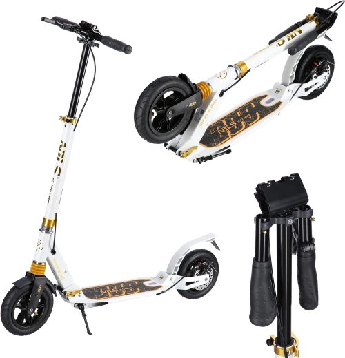 Ontdek comfortabel woon-werkverkeer met de opvouwbare step NILS Extreme HM209T. Hij biedt opblaasbare wielen van 200 mm, voor- en achtervering voor een soepele rit, ABEC 9-lagers en schijf- en voetrem voor extra veiligheid. Dankzij het snelle vouwsysteem, het lage gewicht van 6,35 kg en de draagriem is hij ideaal voor in de stad, op reis en in het OV.