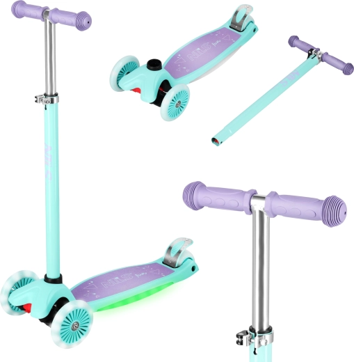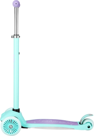 Deze kinderstep combineert veiligheid, comfort en modern design. Twee voorste PU-wielen met LED-dioden zorgen voor een soepele rit en betere zichtbaarheid, terwijl het brede antislip deck met lichteffect vertrouwen geeft bij afzet en afstap. ABEC 7-lagers dragen bij aan een stille en vloeiende loop.