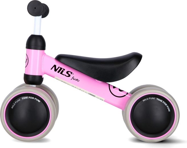 De eerste stap naar zelfstandig rijden: de kinderloopfiets NILS Fun RB002 met vier brede EVA-wielen voor extra stabiliteit en vloervriendelijkheid. Zonder pedalen voor een natuurlijke ontwikkeling van balans en coördinatie, met comfortabele TPR-handgrepen en een licht frame voor eenvoudig sturen, ook binnenshuis.