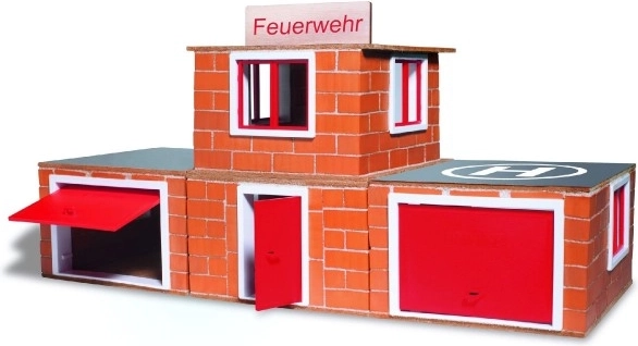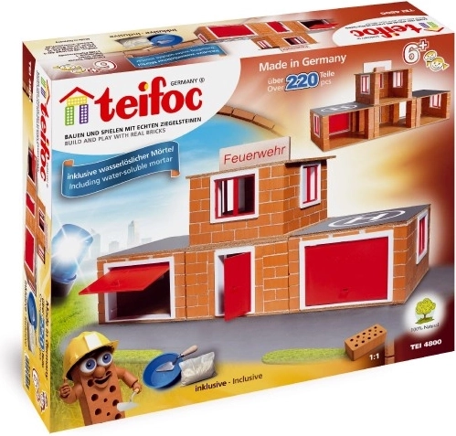 Met de TEIFOC bouwset Brandweerkazerne ervaren kinderen realistisch bouwen: ze mengen de mortel, bestrijken de steentjes en zetten stap voor stap hun eigen kazerne in elkaar. Echte mini baksteentjes en in water oplosbare maïsmortel zorgen voor een authentieke ervaring en veilig speelplezier.