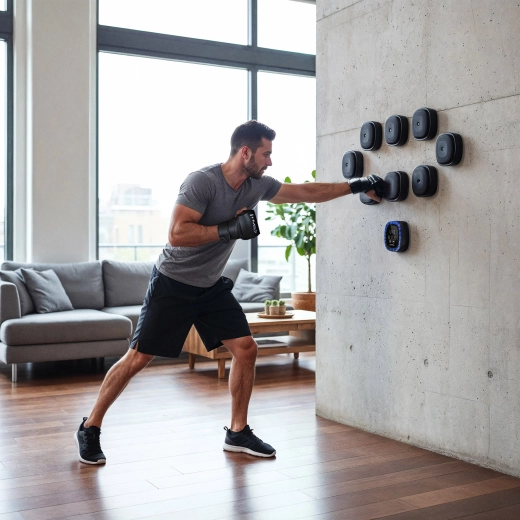 Kies uit 9 trainingsprogramma’s en stel de snelheid van de verlichting in volgens je niveau. Montage is snel en zonder de muur te beschadigen – alles wordt stevig bevestigd met klittenband. De ingebouwde Li-Ion accu van 2000 mAh levert ruim voldoende energie, en massaal opladen via USB-C (tot 8 elementen tegelijk) bespaart tijd en kabels. In de verpakking vind je ook MMA-handschoenen, zodat je meteen kunt beginnen met trainen.