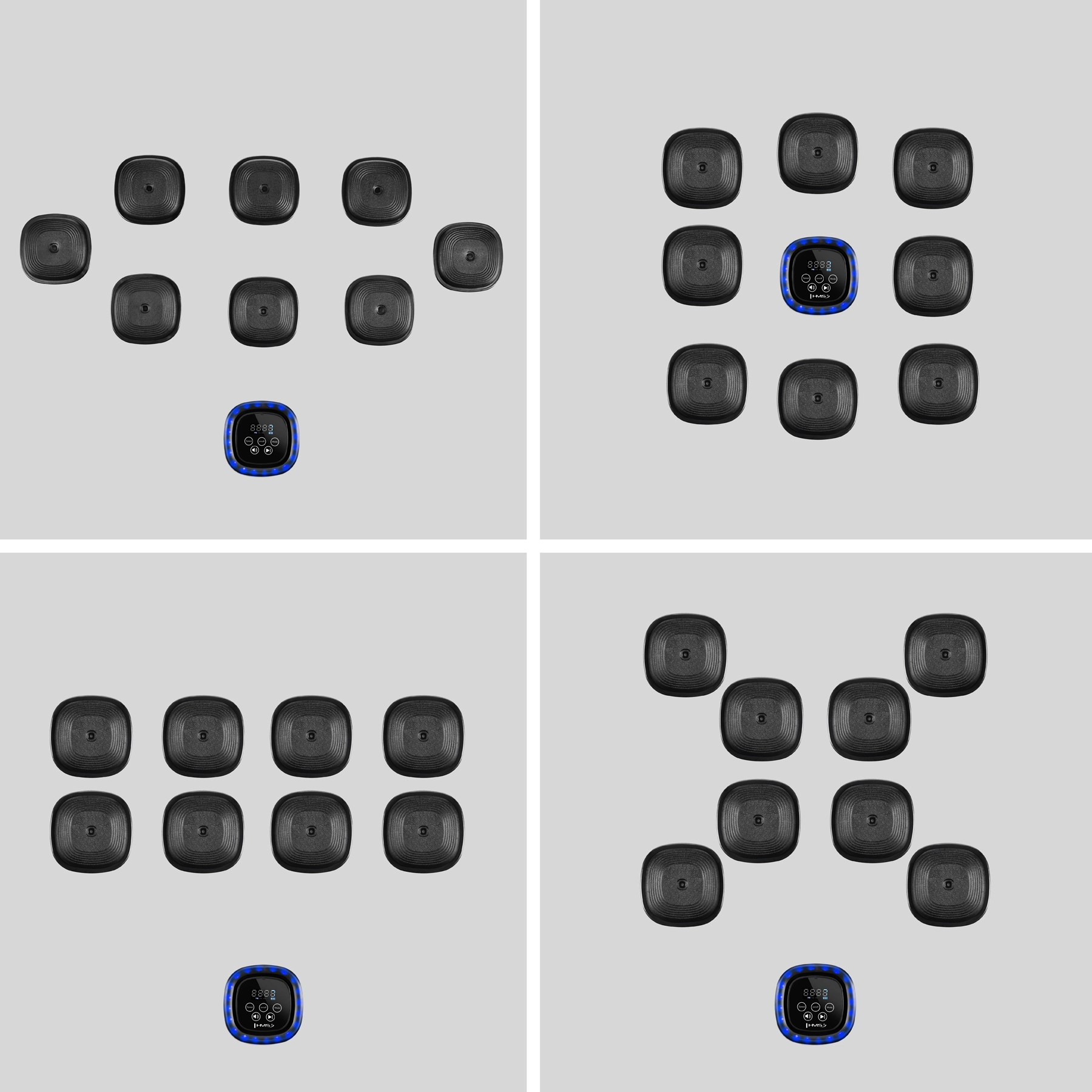 • Modulair systeem met 9 elementen – vrije plaatsing en variabele training.