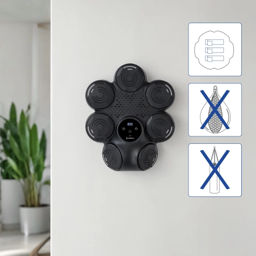 De speciale constructie met verhoogde slagzones zorgt voor een realistischer contact en laat je rechte stoten, hooks, uppercuts en reactie op lichtsignalen trainen. De montage met stevig klittenband is snel en stabiel, terwijl de geïntegreerde accu met USB‑C‑opladen zorgt voor gemak zonder kabels. In de verpakking vind je ook duurzame bokshandschoenen voor de zak, zodat je direct kunt beginnen.