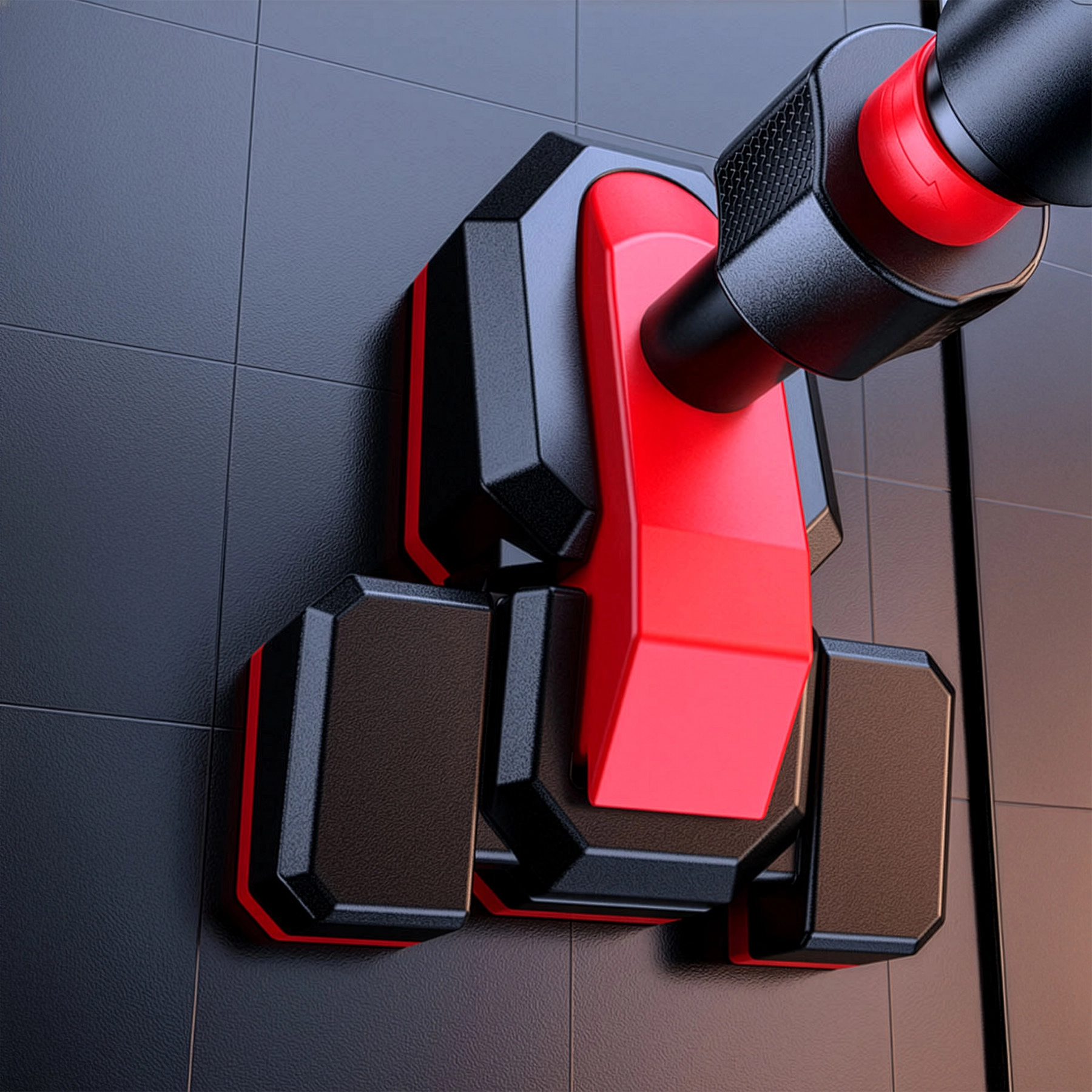 Drie brede antislip-steunvlakken met een dichte structuur maximaliseren het contact met het kozijn, verhogen de wrijving en beschermen oppervlakken tegen krassen. De montage is volledig zonder boren – stel de lengte in, vergrendel het slot en lijn eenvoudig uit dankzij de geïntegreerde waterpas. Zachte, vormvaste foamhandgrepen bieden een comfortabele en zekere grip, ook bij langere sessies.
