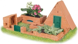 Beleef hoe echte bouwers werken: roer de mortel aan, smeer de bakstenen in, bouw een huis of kasteel, laat het weken, droog het – en je kunt opnieuw bouwen. De bouwset met echte bakstenen die met maïsmortel worden verbonden traint niet alleen de fijne motoriek, maar stimuleert ook de creativiteit van kinderen.