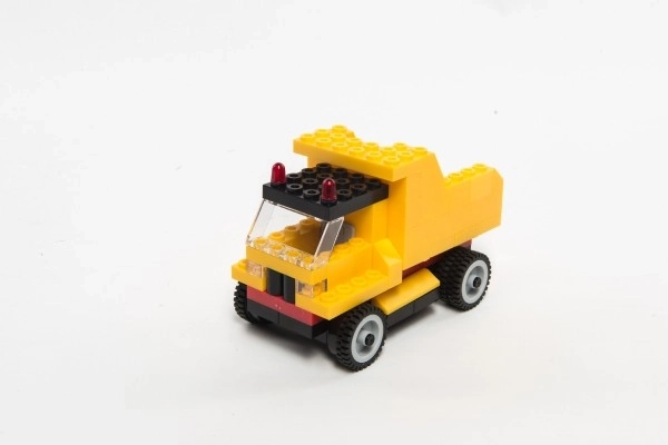 Een eenvoudig model van een kiepwagen vergroot de speelmogelijkheden en ondersteunt creatief bouwen.