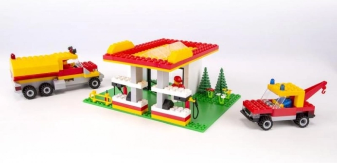 Bouw een tankstation met details waar kinderen van houden – pompen, overkappingen en decoraties. Een speelscenario vol tankstops en voertuigservice.