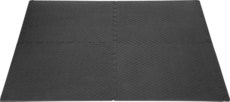 De basisset bevat 4 vierkante delen en 8 afwerklijsten, waarmee je een oppervlak van 120 × 120 cm met een dikte van 12 mm samenstelt – ideaal onder één machine, bankje of in de hoek van de werkplaats. Het EVA-materiaal is makkelijk afwasbaar, vochtbestendig en biedt effectieve demping van schokken en trillingen, bijvoorbeeld bij het neerleggen van gewichten of gereedschap.
