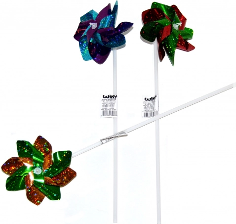 De windmolen is verkrijgbaar in zes kleursamenstellingen (afhankelijk van actuele beschikbaarheid). Plaats hem in de tuin, in een bloempot of achter het raam en zie meteen hoe de wind waait.