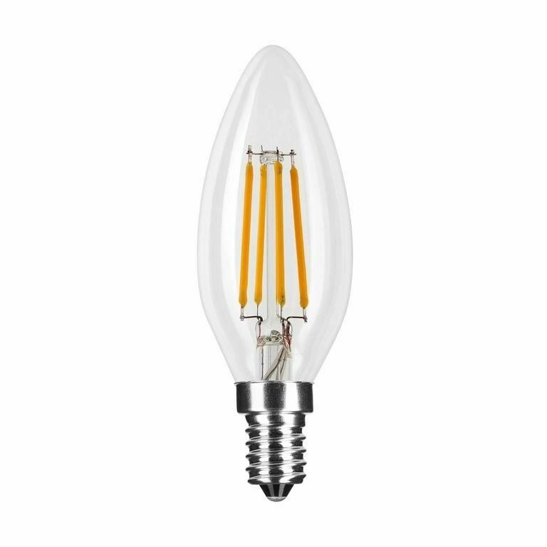 Elegante LED-lamp in kaarsvorm met E14-fitting en een vermogen van 4 W levert heldere 470 lm warmwit licht van 2700 K. Dankzij de filament-technologie straalt hij 360°, heeft hij een lange levensduur van 35.000 uur en uitstekende efficiëntie voor zuinige en stijlvolle verlichting.