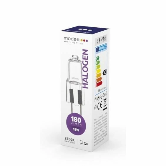 De halogeenlamp MODEE G4 18 W is een ideale vervanging voor decoratieve en functionele verlichting in kroonluchters, lampen en inbouwarmaturen. Hij zorgt voor prettig warmwit licht (2700 K), is dimbaar en brandt direct na inschakelen zonder vertraging.