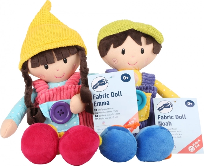 Ontdek een duo stoffen vriendjes dat kinderen de hele dag vergezelt – op de speelplaats en ’s nachts in dromenland. De poppen Emma en Noah hebben doordachte details – knopen, klittenband, veters en geluidselementen – die tastzin, gehoor en oog-handcoördinatie ontwikkelen. Dankzij het zachte materiaal zijn ze veilig en geschikt zelfs voor de allerkleinsten.