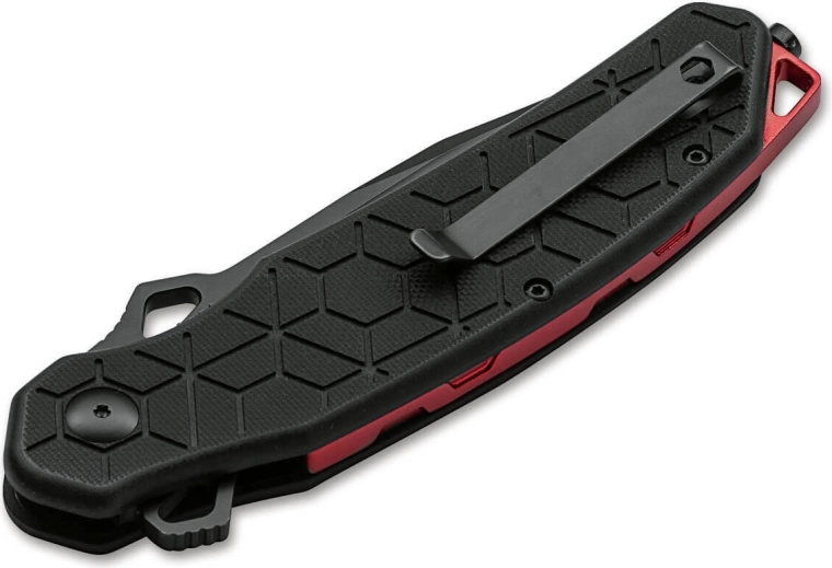 De ergonomische handgreep van G10 met opvallende honingraattextuur zorgt voor een veilige grip, ook met handschoenen of in natte omstandigheden. Het design wordt aangevuld met een rode aluminium spacer, een koordoog, een praktische broekklem en een geïntegreerde glasbreker voor noodsituaties. Het mes wordt geleverd in een hoogwaardig nylon etui dat het dragen en beschermen van het gereedschap vergemakkelijkt.