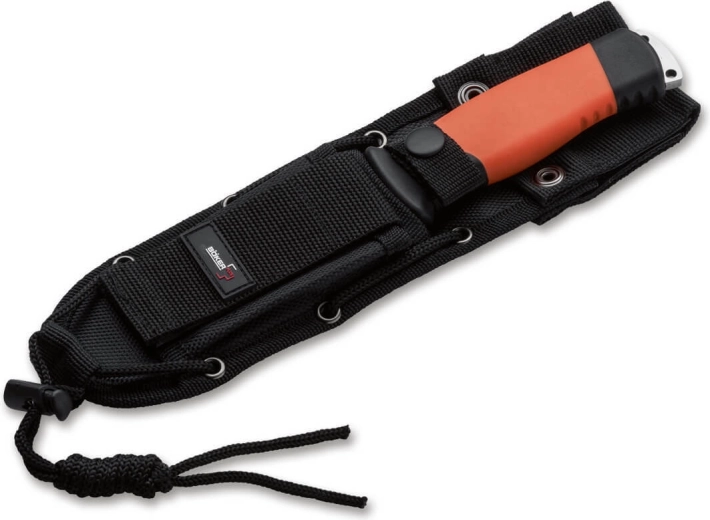 Het robuuste en tegelijk compacte outdoormes BÖKER PLUS Outdoorsman XL is de vergrote versie van het populaire model Outdoorsman. Het biedt een stevig full-tang lemmet van roestvast staal 12C27 met een satijnen afwerking, een gerubberd antisliphandvat en hoge zichtbaarheid dankzij de oranje kleur. Ideaal voor kamperen, jacht, bushcraft en survival, geleverd met een nylon foedraal.