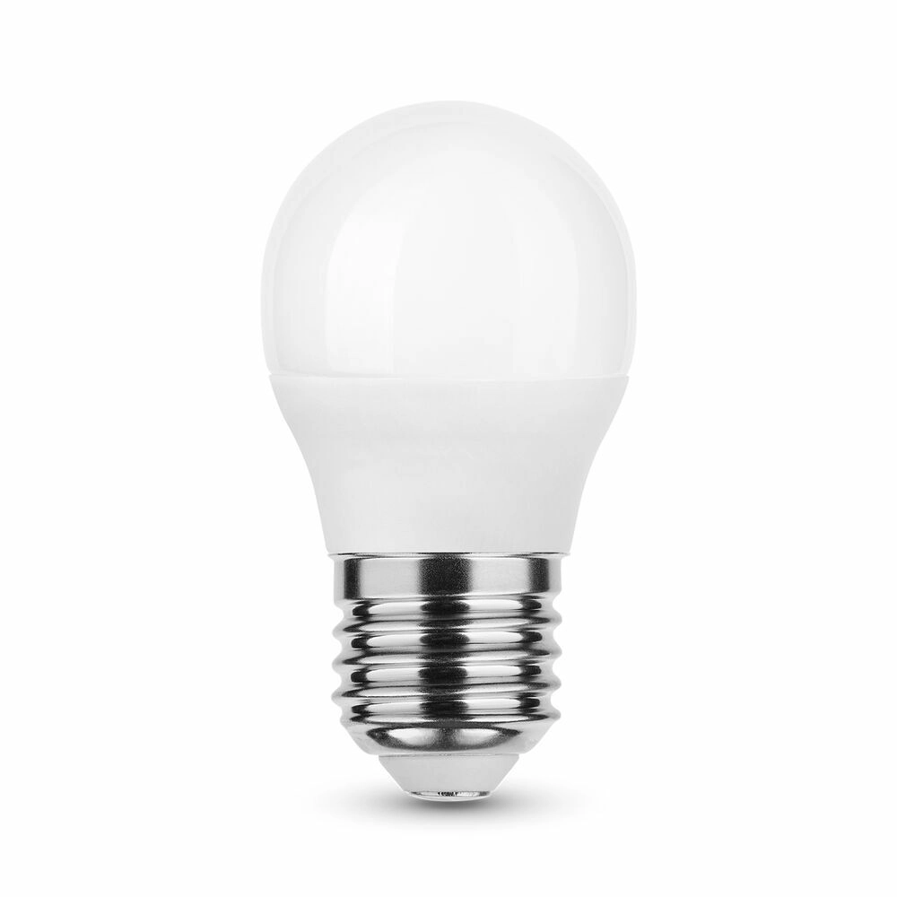 De mini bolvormige G45-lamp combineert zuinigheid en betrouwbaarheid. Dankzij de SMD-LED technologie bereikt hij een hoge efficiëntie met behoud van aangenaam, gelijkmatig licht in de kleur 2700 K (warm wit), geschikt voor huiselijke sfeer en ontspanning.