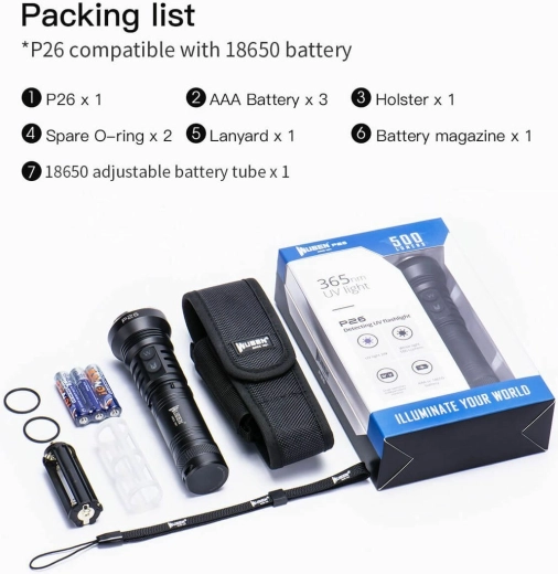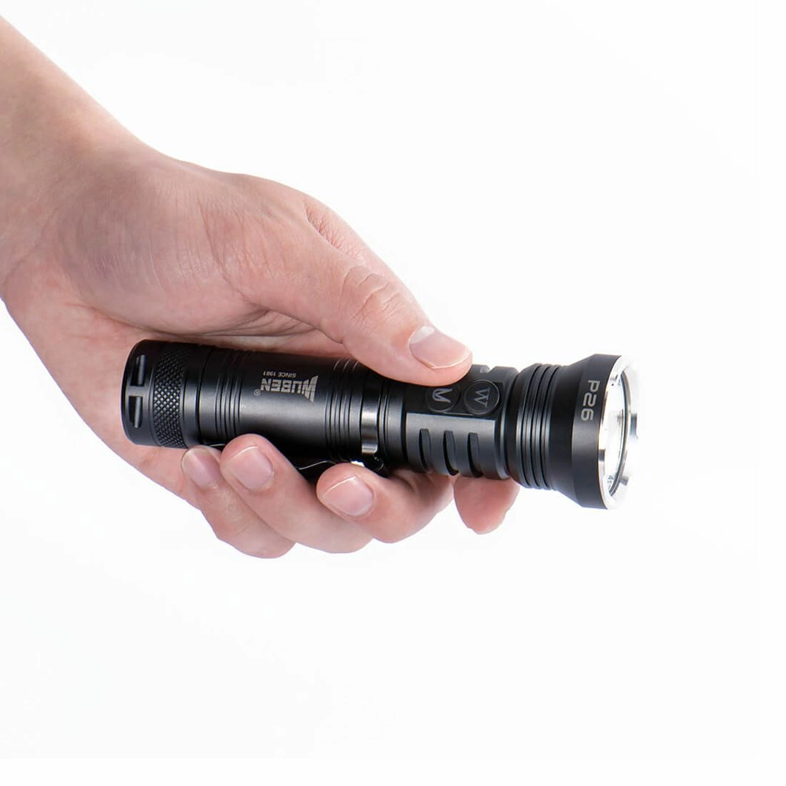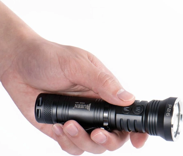 Dankzij de combinatie van 1× Cree XPG3 voor wit licht en 1× UV LED levert de P26 een helderheid tot 500 lumen, drie praktische modi en snel schakelen. Flexibele voeding met 3× AAA of een compatibele 1× 18650 Li-ion accu verlengt de werktijd en vergroot de beschikbaarheid van energie in het veld. De ingebouwde batterijstatus-indicator maakt het plannen van vervanging of opladen eenvoudiger.