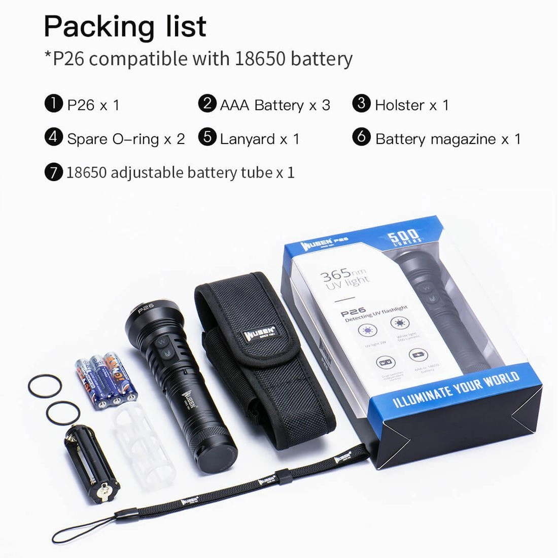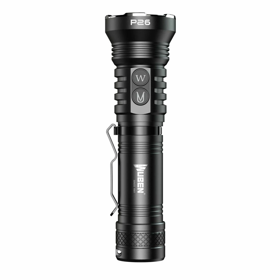 De veelzijdige WUBEN P26 2-in-1 zaklamp biedt krachtig wit licht en nauwkeurig UV-licht (365 nm) voor inspectie, verificatie, het zoeken naar sporen of werk in het veld. De robuuste aluminium behuizing met getextureerde grip, broekclip en compacte afmetingen garanderen prettig dragen en betrouwbaarheid in veeleisende omstandigheden.